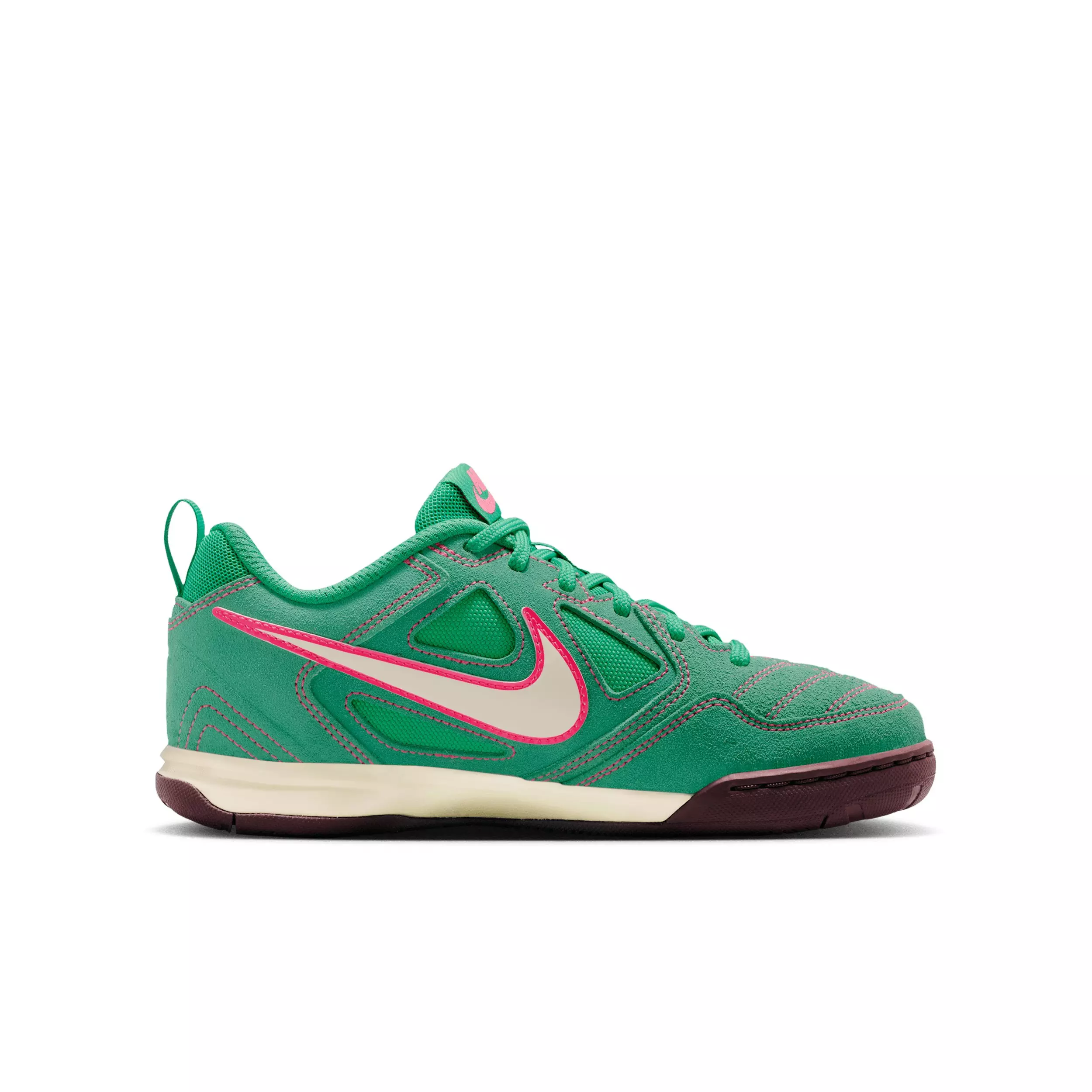 Originally an indoor soccer favorite, the Nike Gato "Stadium Green/Hyper Pink/Burgundy Crush/Coconut Milk" Grade School Girls' Shoe is back with heritage style. With breathable mesh, sturdy suede and a springy foam midsole, it helps you stay ready to play on field and off.Features