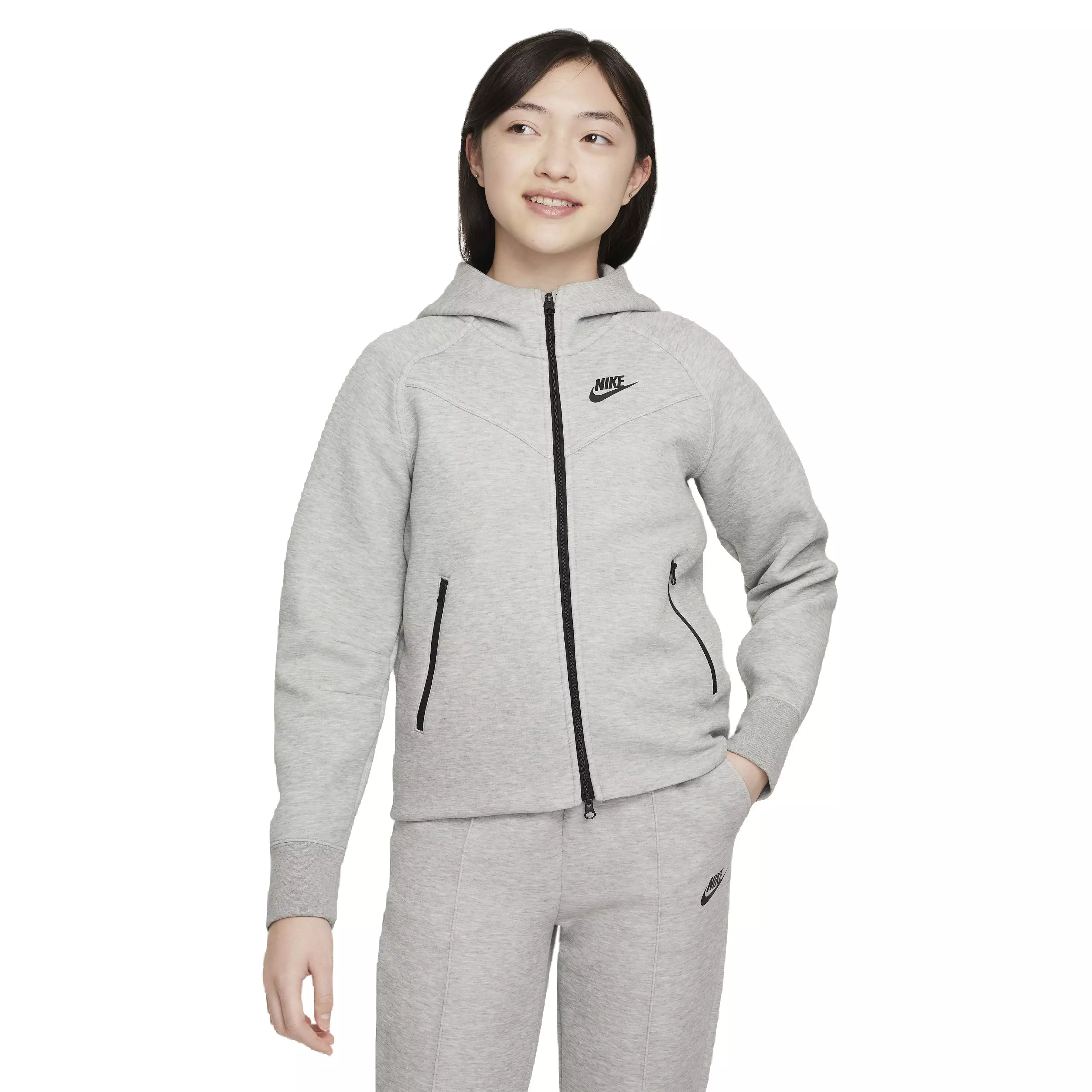 Engineered to handle cold weather, the Nike Girls' Sportswear Tech Fleece Full-Zip LS Hooded Jacket combines soft warmth and a sleek profile. Lightweight fleece feels smooth inside and out, keeping you cozy without bulk.