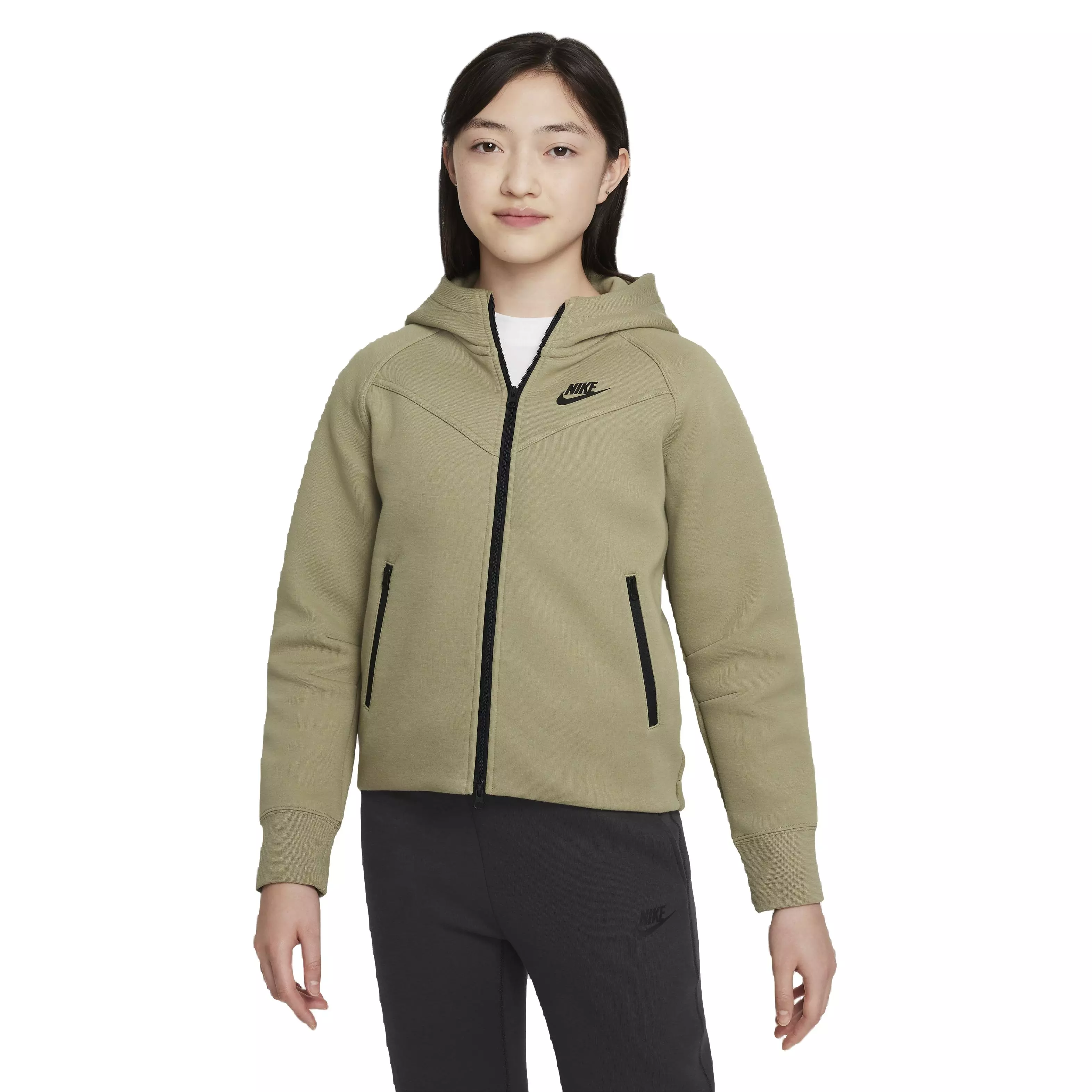 Engineered to handle cold weather, the Nike Girls' Sportswear Tech Fleece Full-Zip LS Hooded Jacket combines soft warmth and a sleek profile. Lightweight fleece feels smooth inside and out, keeping you cozy without bulk.
