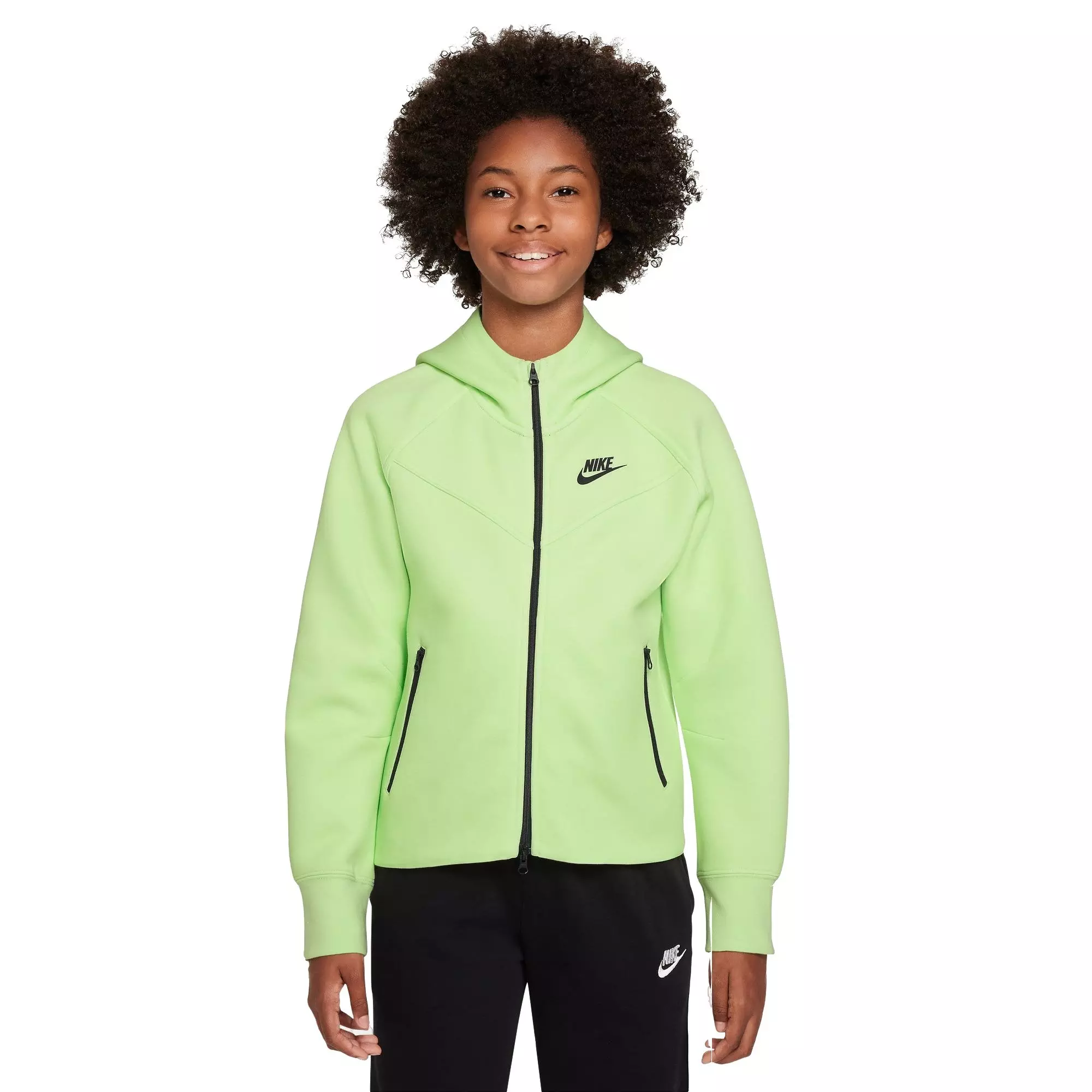 Engineered to handle cold weather, the Nike Girls' Sportswear Tech Fleece Full-Zip LS Hooded Jacket combines soft warmth and a sleek profile. Lightweight fleece feels smooth inside and out, keeping you cozy without bulk.