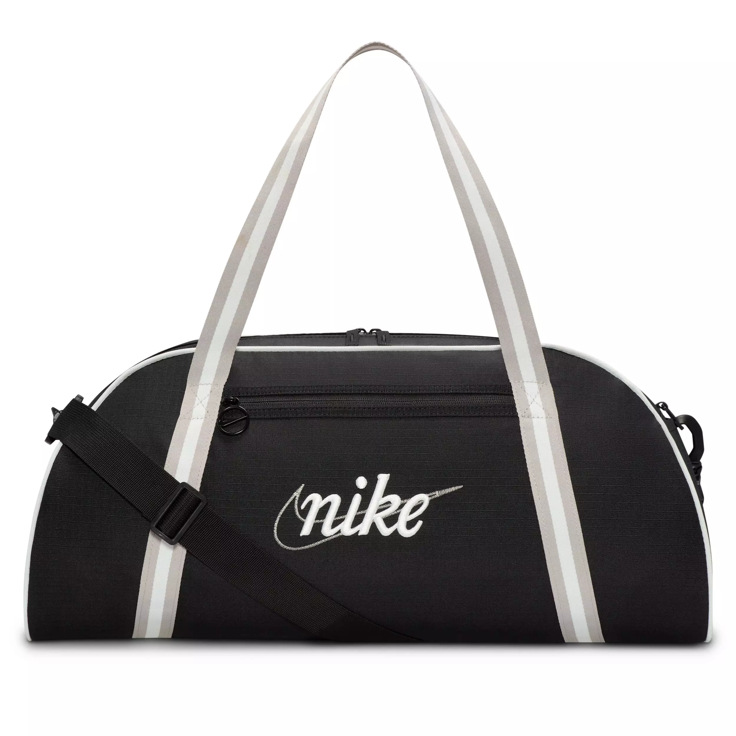 This Nike Gym Club Training Bag - Black/College Grey/Summit White keeps everything you need for your class, workout or adventure one zip away. It has a spacious main compartment and zippered pockets inside and out for quick-grab organization. Carry it by hand or over your shoulder so your gear is always close. This product is made with at least 65% recycled polyester fibers.