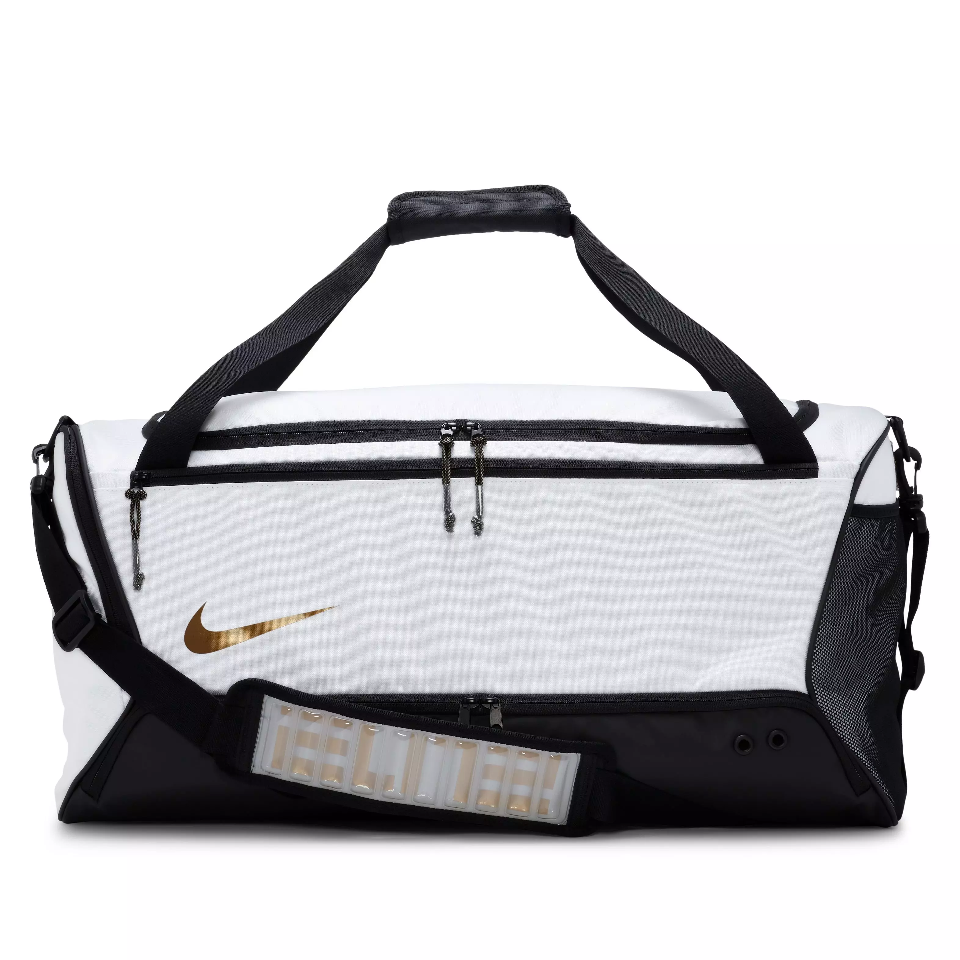 Wherever your game takes you, take the gear you need to succeed. The Nike Hoops Elite Duffel Bag has plenty of room for all the stuff you need on and off of the court, including a ventilated zippered bottom compartment to store your favorite pair of sneakers. Throw it onto your shoulder or grab the dual handles and get going to your favorite local court to swish that half-court shot.