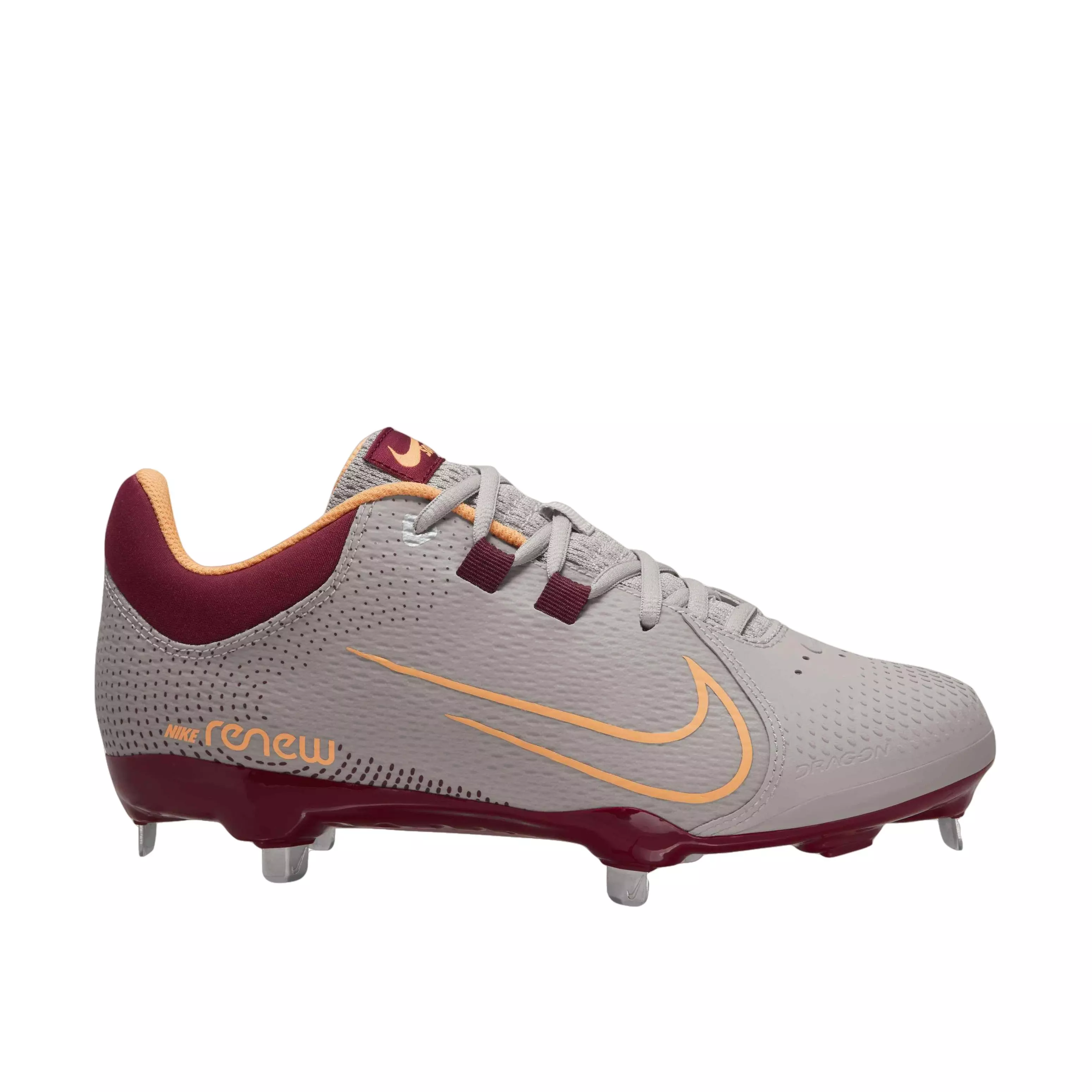 Be quick between the bases and nimble on defense in the Nike Hyperdiamond 4 Pro "Light Iron Ore/Peach Cream/Bright Spruce" Women's Softball Cleat. Abrasion-resistant material on top and angular studs on the bottom work together to give you the durability and traction needed to help beat the relay throw just in time.Features