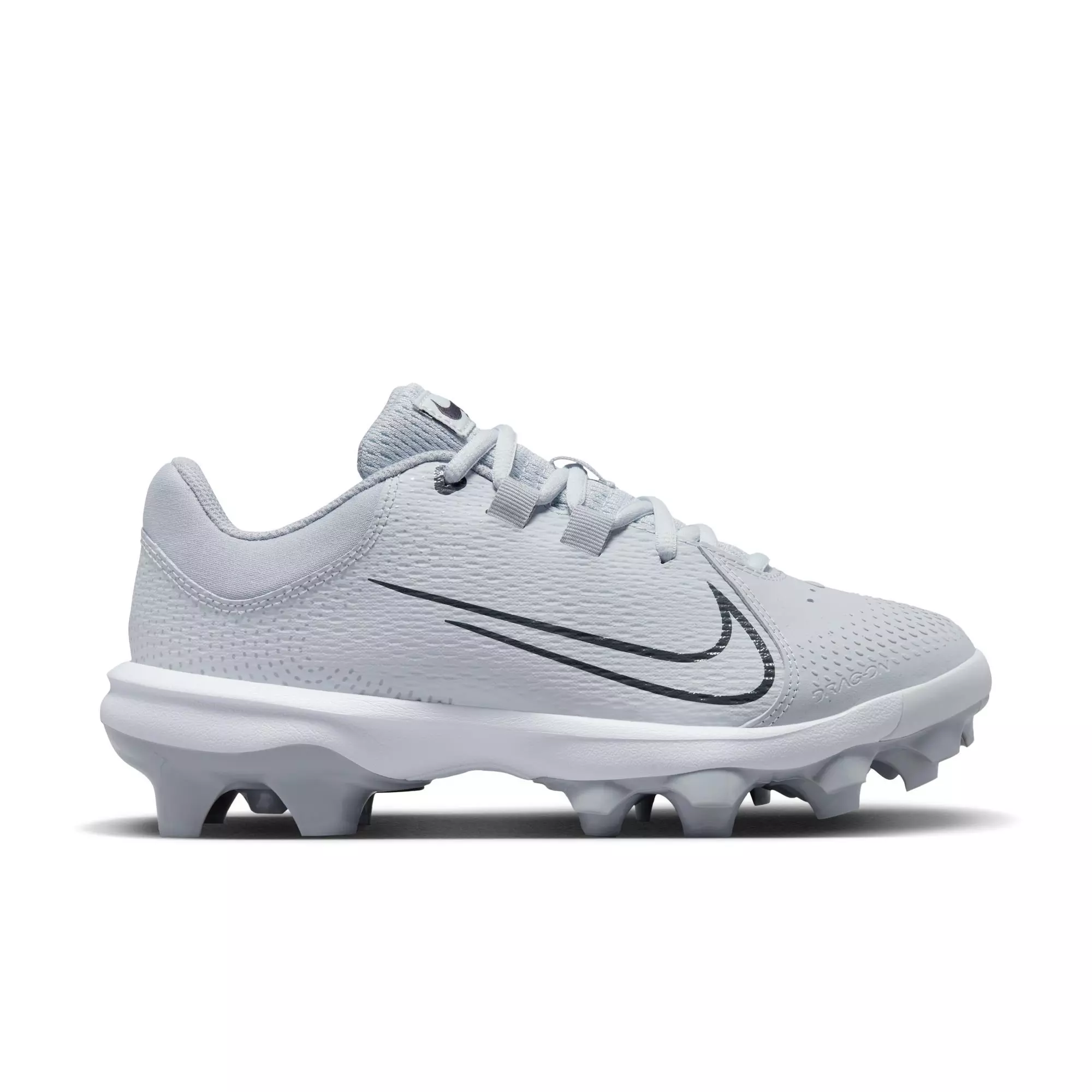 Be quick between the bases in the Nike Hyperdiamond 4 Pro MCS "Pure Platinum/Dark Grey/Wolf Grey" Women's Softball Cleat. A flexible plate with molded studs gives you optimal traction to help beat the relay throw from the outfield just in time.