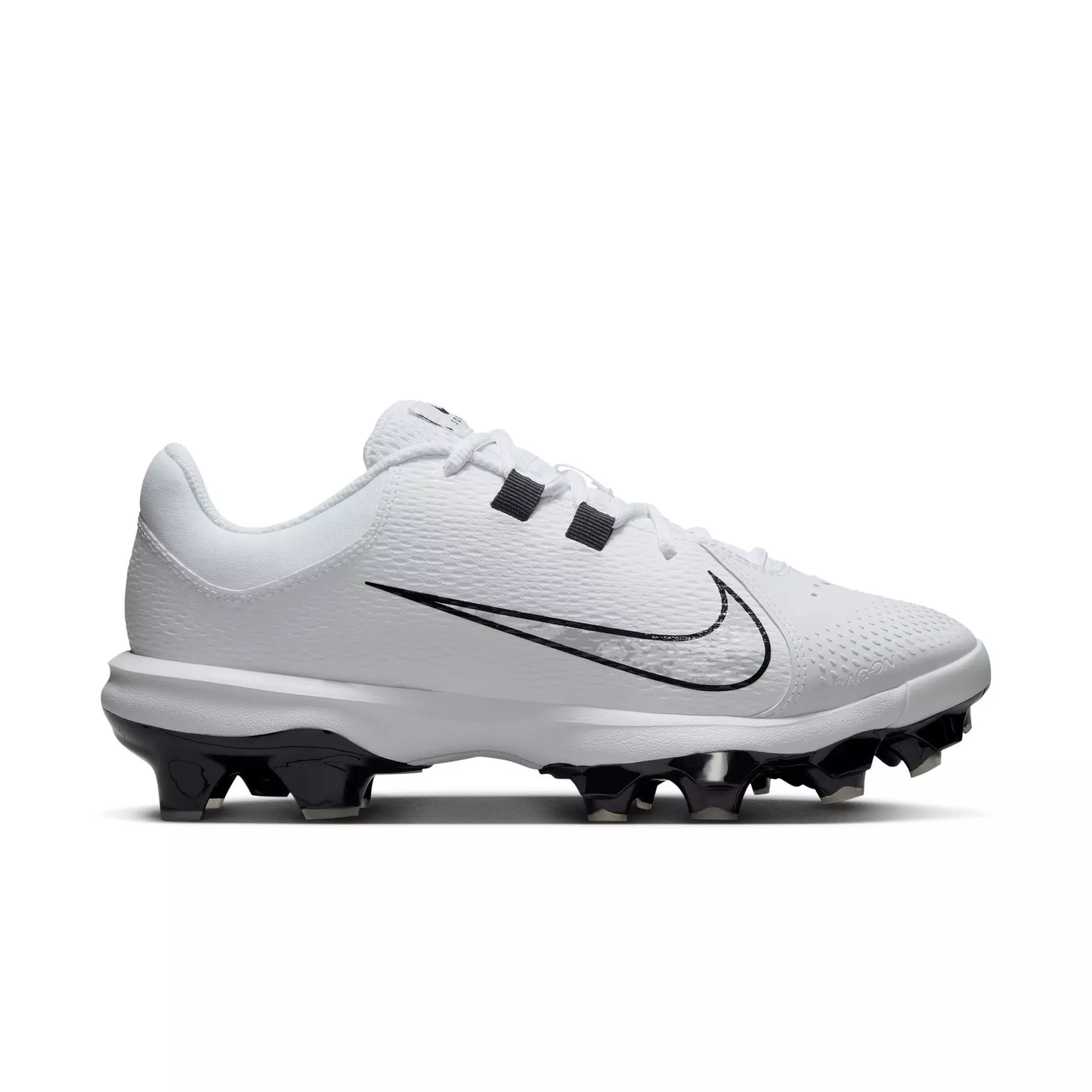 Experience speed right from the first pitch with the Nike Hyperdiamond 4 Pro MCS "White/Black/Pure Platinum" Women's Softball Cleat. Built for explosive plays, its flexible plate and strategically placed molded studs deliver exceptional traction and stability on both natural and synthetic field surfaces.