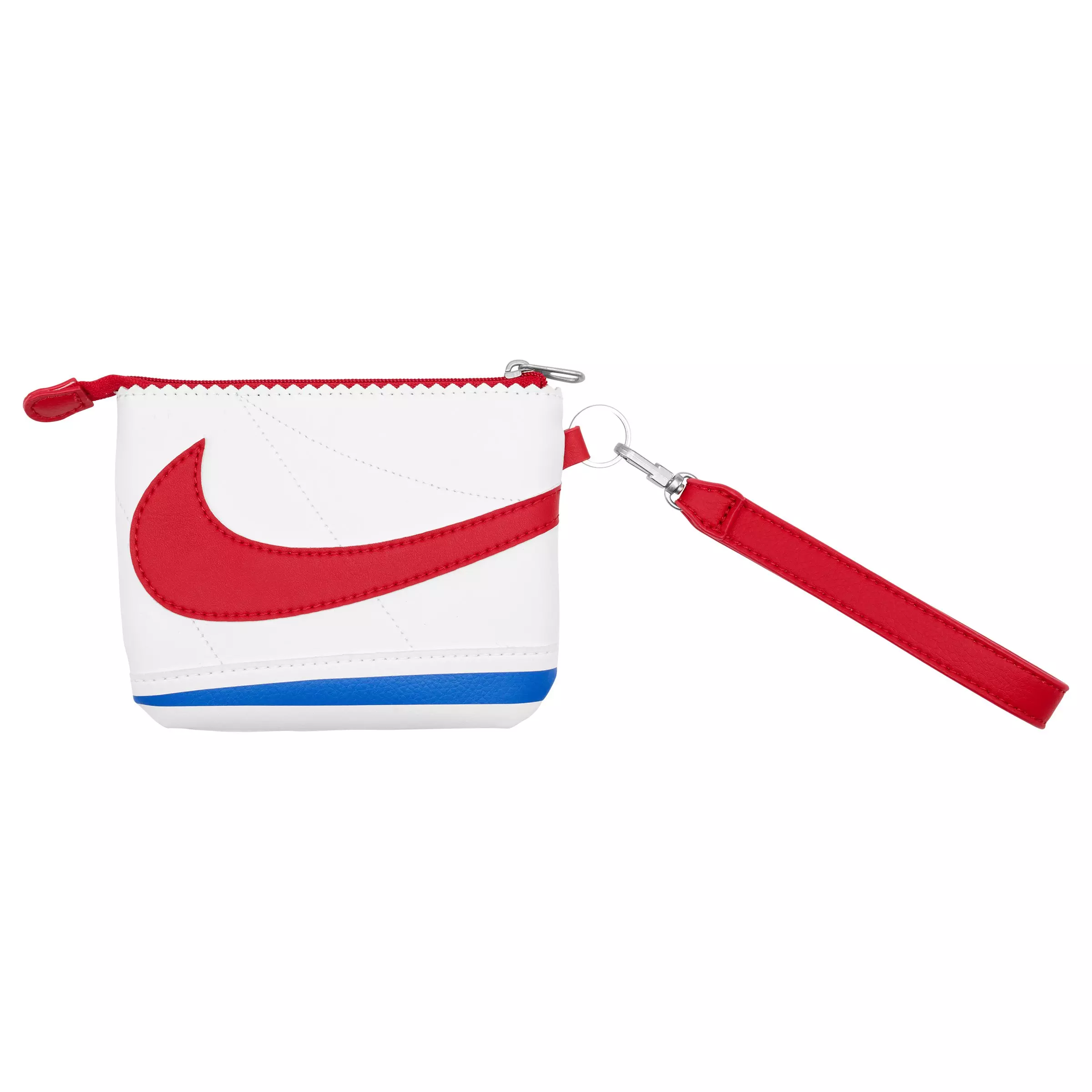 Keep your smaller essential items safe in this Nike Icon "Forrest Gump" Cortez Wristlet, a compact carry designed to nod to the classic white, red, and blue Cortez colorway. A secure main compartment helps organize cards, cash, and keys while keeping everything easy to reach on the go.