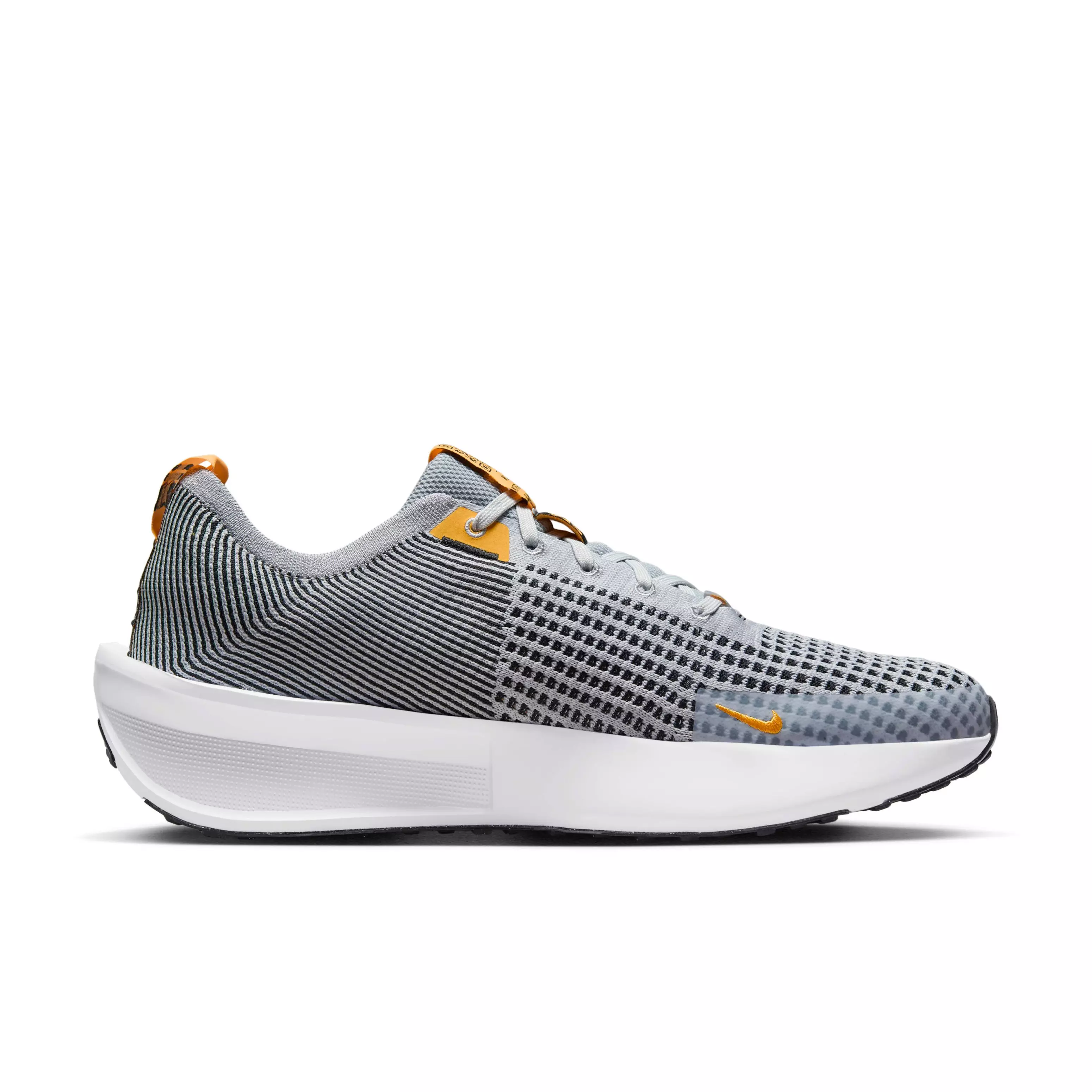 Can you see the future? Fast-forward your footsteps in the cutting-edge Nike Interact Run "Wolf Grey/Black/White/Laser Orange" Men's Running Shoe. It’s set up with all the running goodness you need: a lightweight Flyknit upper, soft foam midsole and comfort where it counts. Scan the QR code on the tongue with your phone, and check out our online introduction into the Nike Interact Run’s ins and outs.Features