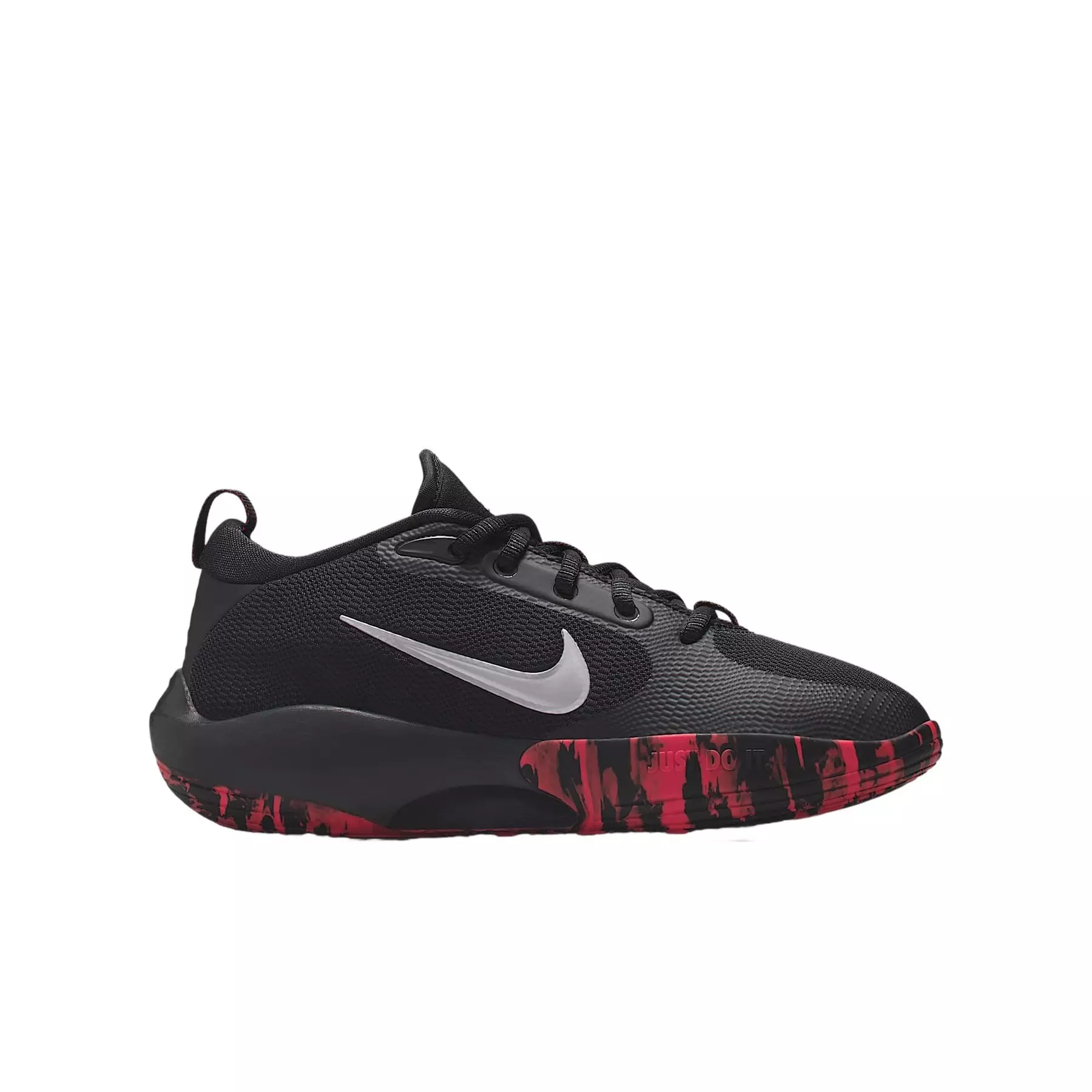 Lace up the Nike IsoFly "Black/University Red/Light Crimson/Metallic Silver" Grade School Boys' Basketball Shoe to feel lightweight and bouncy when you play. With durable traction, it grips the ground whether you're out on the playground or inside playing on a hardwood court. Extra cushioning underfoot and breathable material up top help you run and jump in comfort until the buzzer sounds and you have to go home or head back into class.