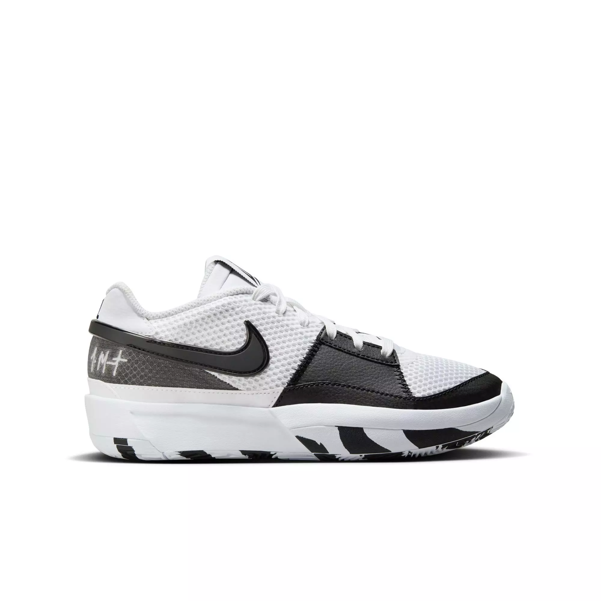 The Nike JA 1 basketball shoes deliver both style and performance in a classic white/black colorway. The perfect choice for players who want to make a statement on the court, the Nike Ja 1 "White/Black" grade school shoe launches on January 1.