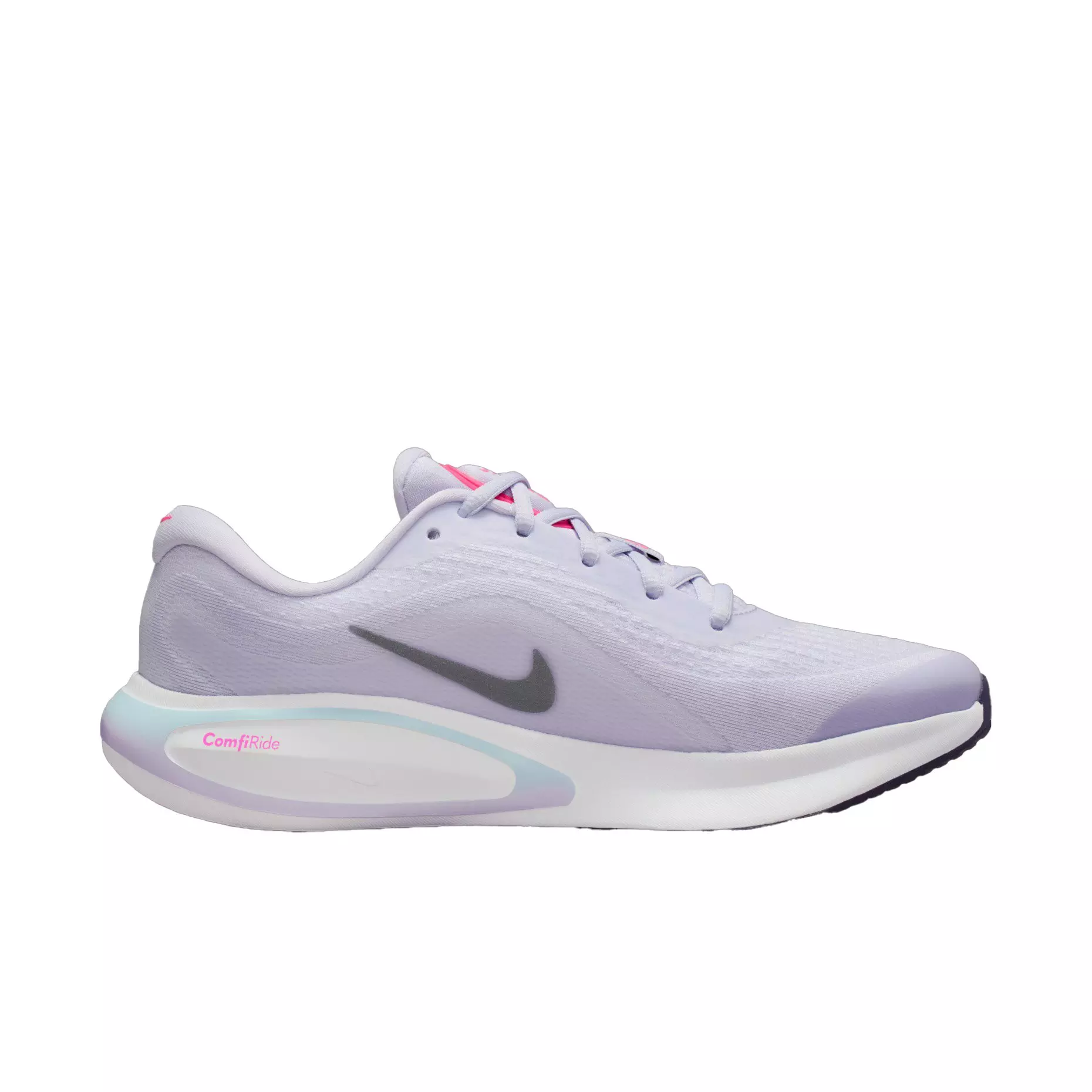 Enjoy every step, route and jaunt in the Nike Journey Run "White/White/Glacier Blue/Black Purple" Women's Running Shoe. It’ll have you striding and smiling on punishing pavements, thanks to extra-high foam stacks and supersoft cushioning. It's so comfy that you'll already be looking forward to lacing 'em up again.