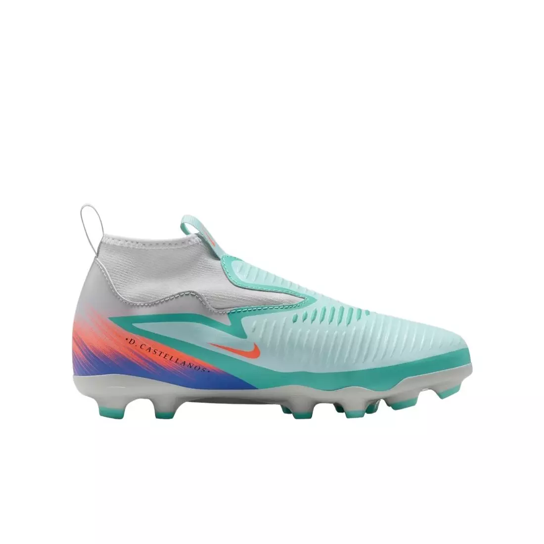 Level up your accuracy with the Nike Jr. Phantom 6 High Academy MG "Pistachio Frost/Hyper Orange" Grade School Kids' Soccer Cleat. It powers your precision with a NikeSkin touch zone, located where you need it for clean strikes. The grippy texture helps you take advantage of scoring opportunities by bringing your foot closer to the ball.Features