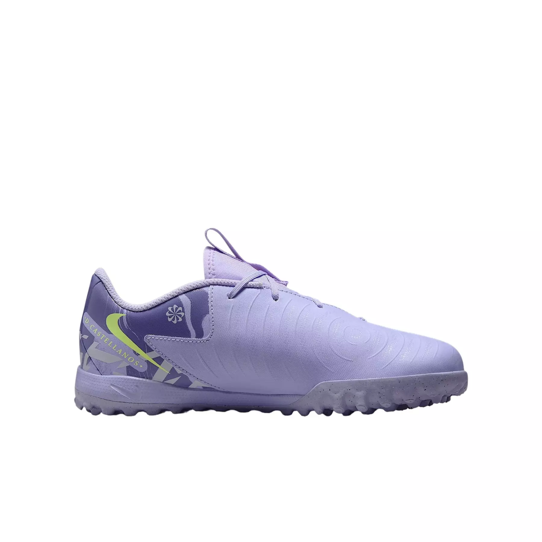 Put the world on notice with the Nike Jr. Phantom GX 2 Academy Turf "Purple Agate/Barely Volt" Grade School Kids' Soccer Shoe. Designed for unstoppably accurate stars like Sophia Wilson and Deyna Castellanos, it features sticky NikeSkin for precise ball control.Features