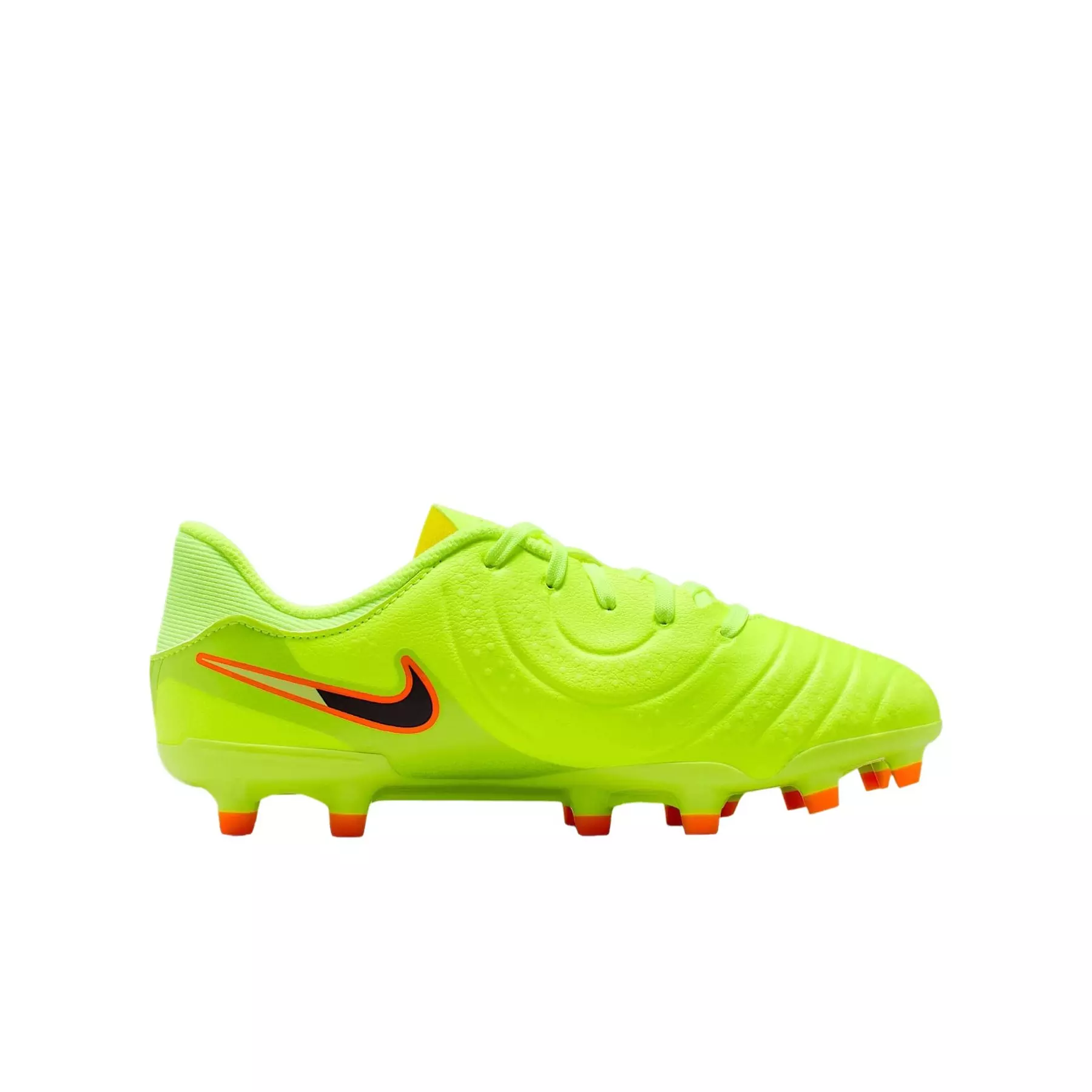 Even Legends find ways to evolve. Made to take your game to the next level, the latest iteration of these Nike Jr. Tiempo Legend 10 Academy MG "Volt/Black" Grade School Kids' Soccer Cleat has all-new FlyTouch Lite engineered leather. Softer than natural leather, it conforms to your foot and doesn't overstretch, so you can dictate the pace of your game. Lighter and sleeker than any other Tiempo to date, the Legend 10 is for any position on the field, whether you're sending a pinpoint pass through the defense or tracking back to stop a breakaway.Features
