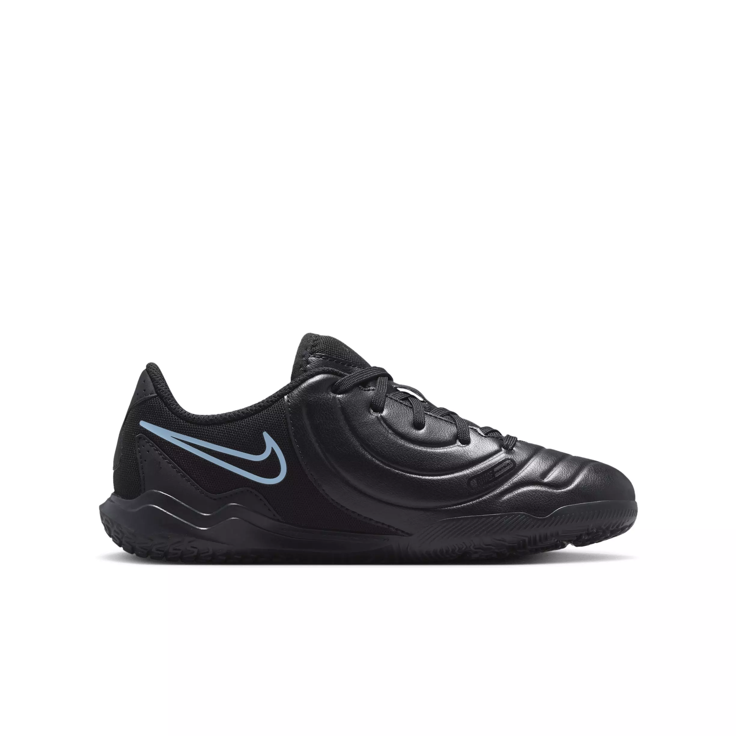 Even Legends find ways to evolve. Whether you’re starting out or just playing for fun, the latest iteration of these Nike Jr. Tiempo Legend 10 Club IC "Black/Black" Grade School Kids' Soccer Shoe gets you on the field without compromising on quality. Synthetic leather conforms to your foot and doesn't overstretch, giving you better control. Lighter and sleeker than any other Tiempo to date, the Legend 10 is for any position on the field, whether you're sending a pinpoint pass through the defense or tracking back to stop a breakaway.Features