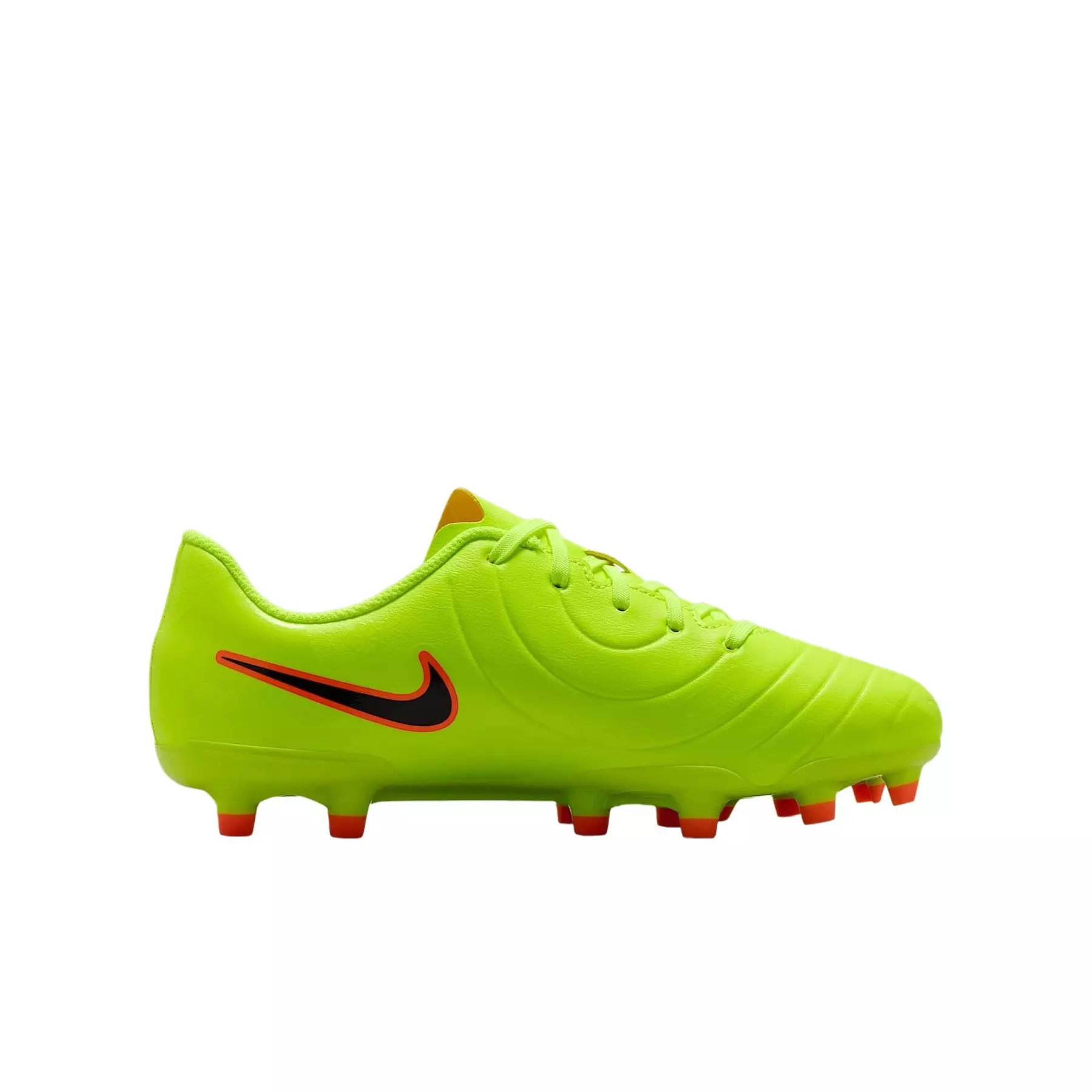 Even Legends find ways to evolve. Whether you’re starting out or just playing for fun, the latest iteration of these Nike Jr. Tiempo Legend 10 Club MG "Volt/Black" Grade School Kids' Soccer Cleat gets you on the field without compromising on quality. Synthetic leather conforms to your foot and doesn't overstretch, giving you better control. Lighter and sleeker than any other Tiempo to date, the Legend 10 is for any position on the field, whether you're sending a pinpoint pass through the defense or tracking back to stop a breakaway.Features
