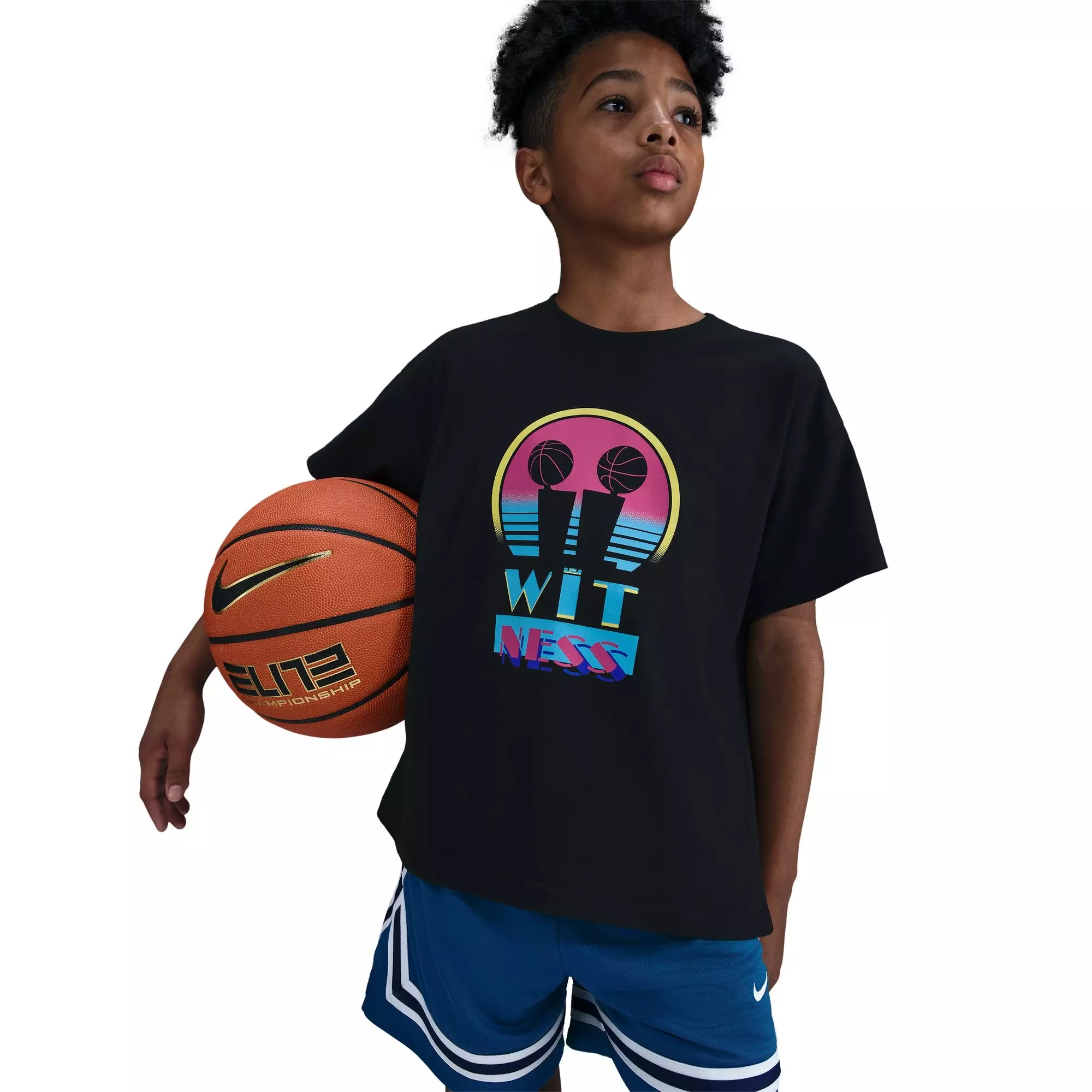 One championship put LeBron in the conversation as a great. But back-to-back titles? Against one of the best dynasties ever? That’s when his legacy was immortalized. This Nike LeBron "Miami Twice" Big Kids' Max90 Basketball Tee toasts the King’s second crown, complete with the tropical blues and pastel pops.Features