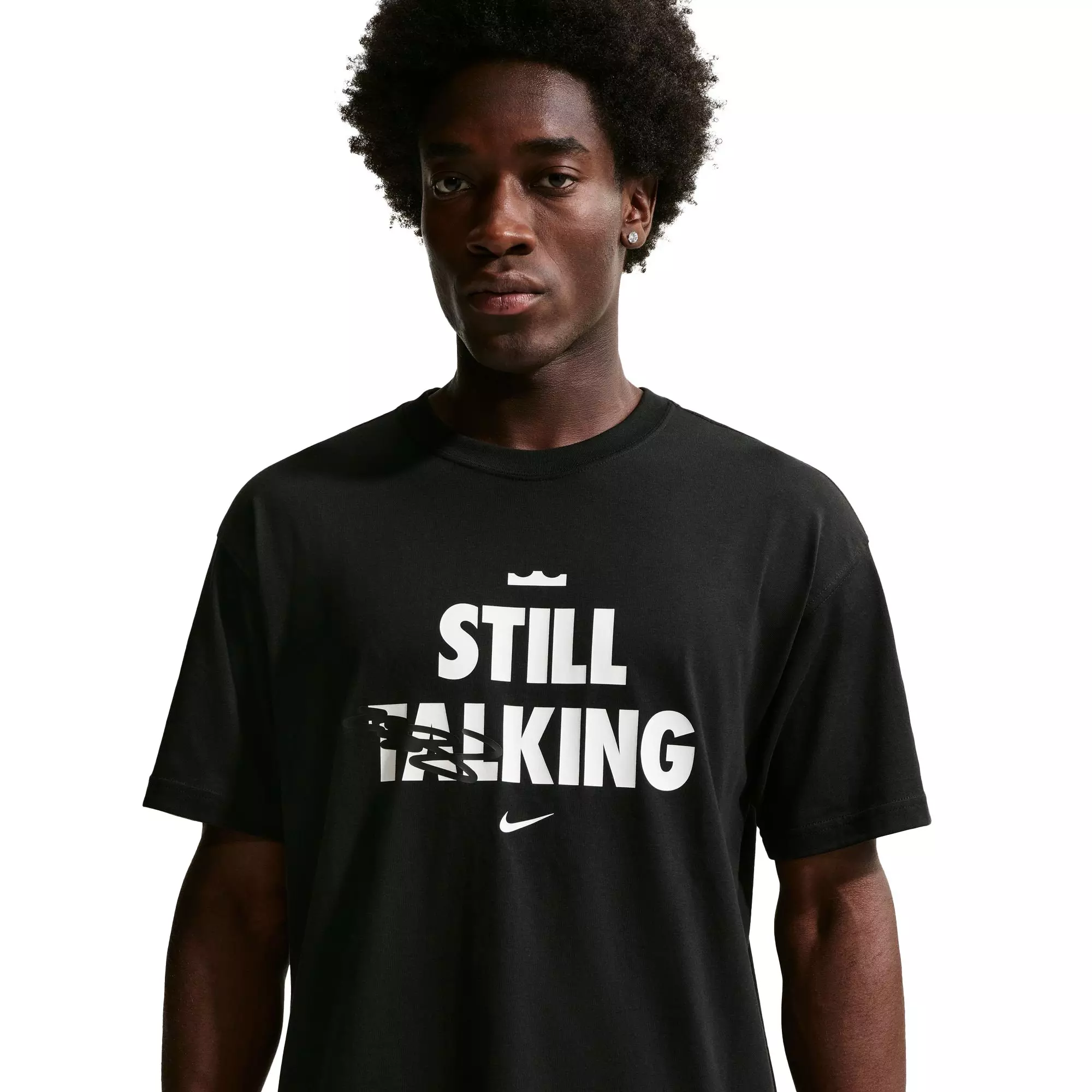 "Shut Up And Dribble"? Never. Not LeBron. LeBron’s “I will not just shut up and dribble” were the 8 words that helped unlock an entire generation to stand up for their belief, stamping a message delivered loud and clear. This Nike LeBron "Shut Up and Dribble" Men's Basketball T-Shirt celebrates LeBron’s status as more than an athlete. He’s an advocate. An ally. And best believe he’ll keep talking.Features