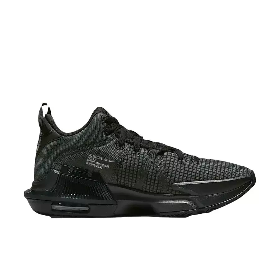 Move light and stay locked in with the Nike LeBron Witness 7 "Black/Anthracite/Black" Men's Basketball Shoe. A full-length Max Air unit softens hard landings and energizes quick takeoffs, while the lightweight mesh upper keeps air flowing. Integrated cables connect with the laces to secure your midfoot.