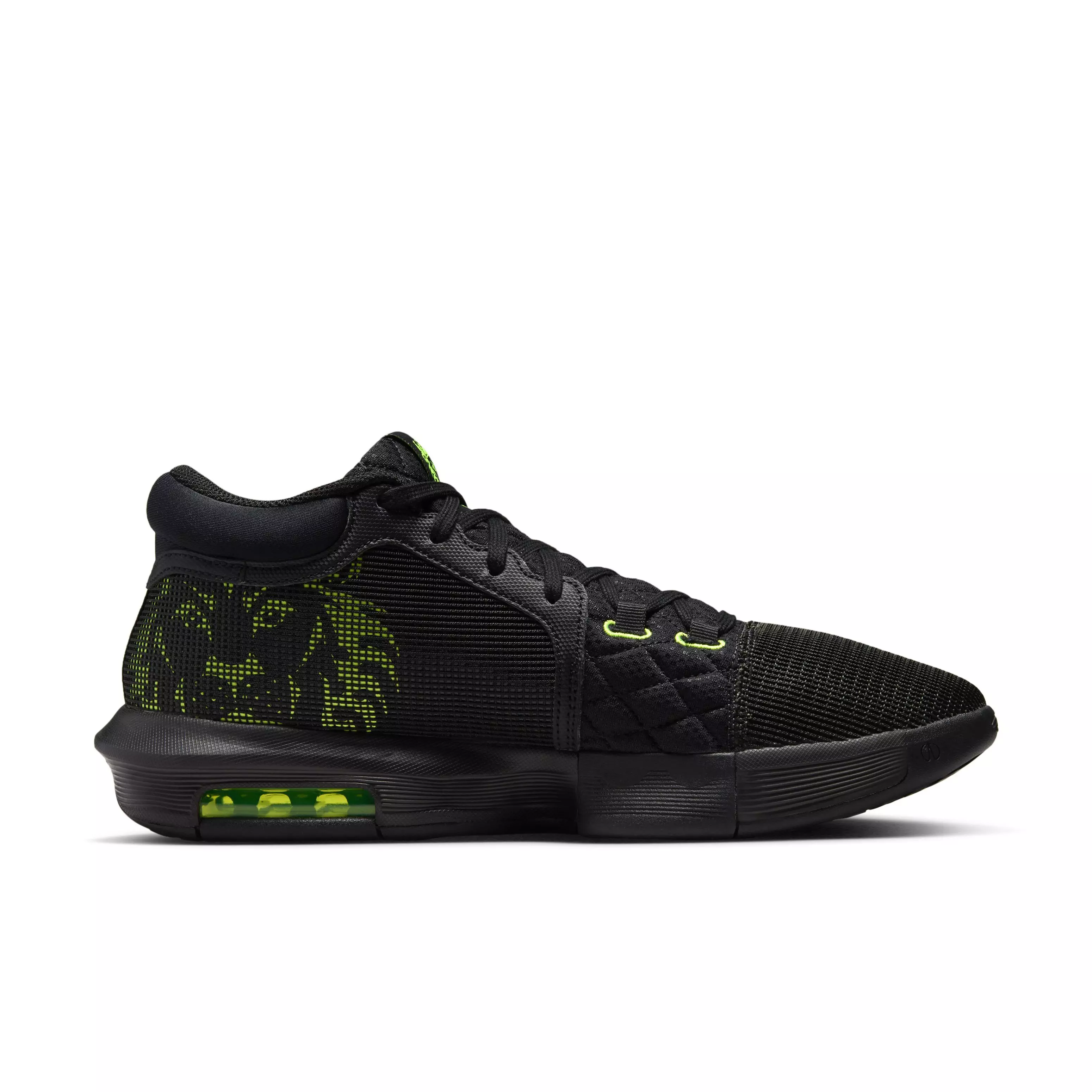 • Signature Design: The Nike LeBron Witness 8 showcases a Black/Volt/White colorway with modern styling.