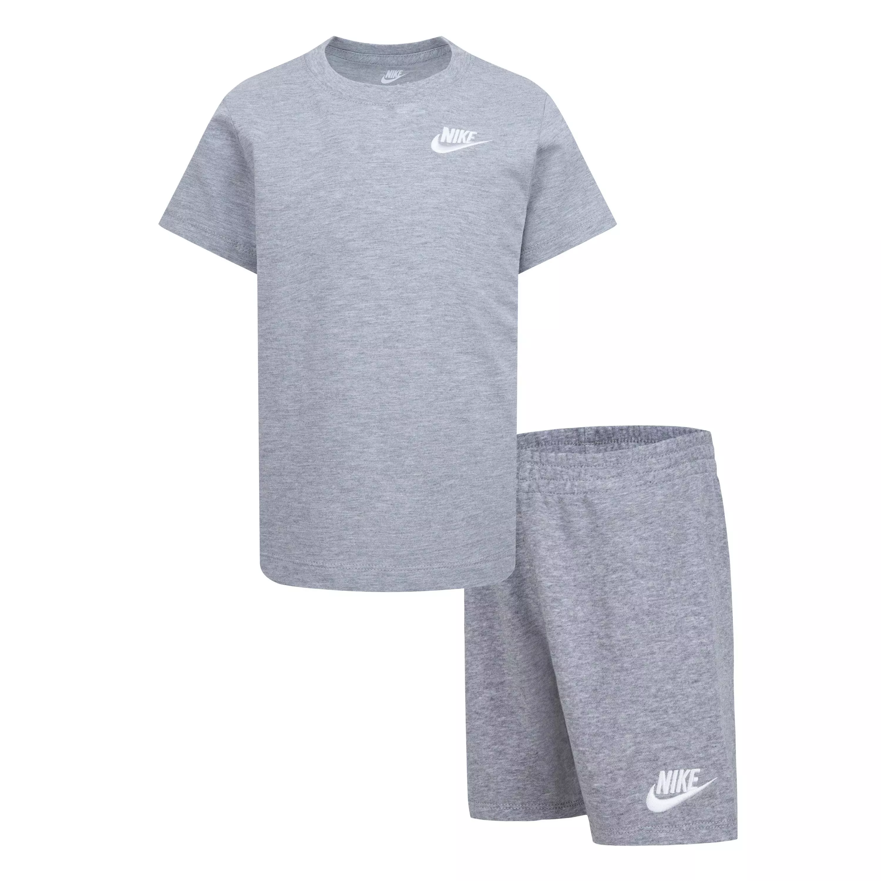 The Nike Little Boys' Knit Short Set - Grey blends a smooth jersey knit tee and shorts made with soft French terry knit fabric. The tagless crewneck offers an easy feel, and the stretch waistband provides a comfy fit through every run, skip and step.