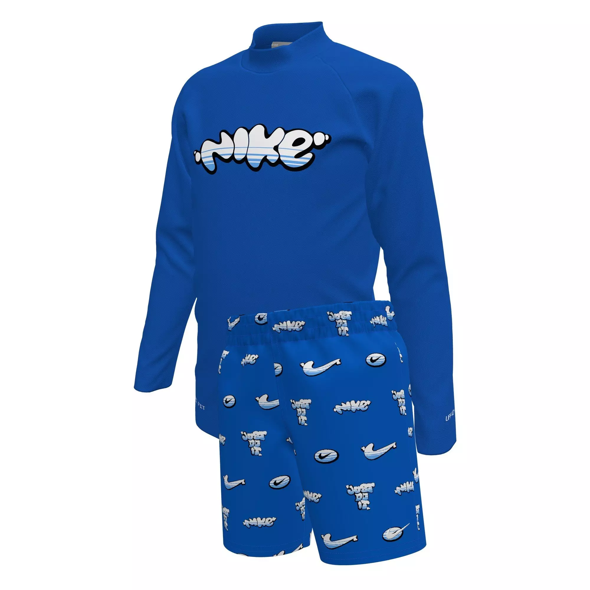 Gear up for sunny days and epic play in this Nike Little Boys' Swim Long Sleeve Top and Short Swim Set. Chlorine-resistant, sweat-wicking fabric pairs with water draining details to help keep little ones cool and comfortable on those summer adventures.Features