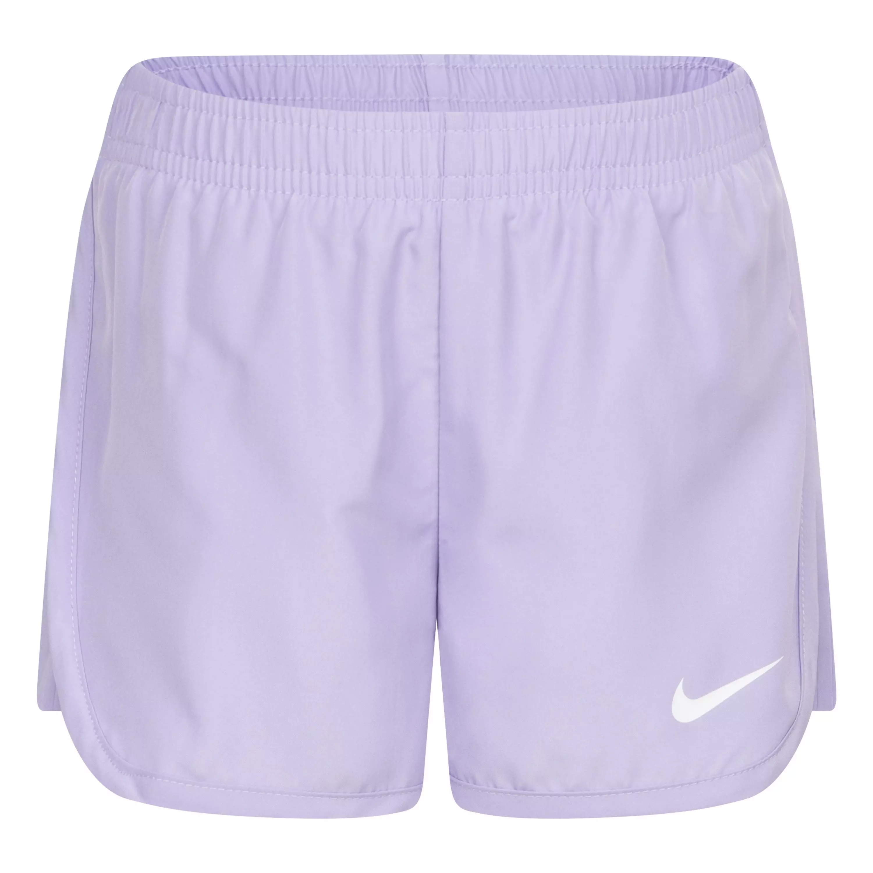 Nike Little Girls' Pleat Side Shorts - Light Purple use woven polyester with quick-drying, moisture-wicking Dri-FIT technology to keep skin cool and dry. The pleated design adds subtle style during warm-weather activities.