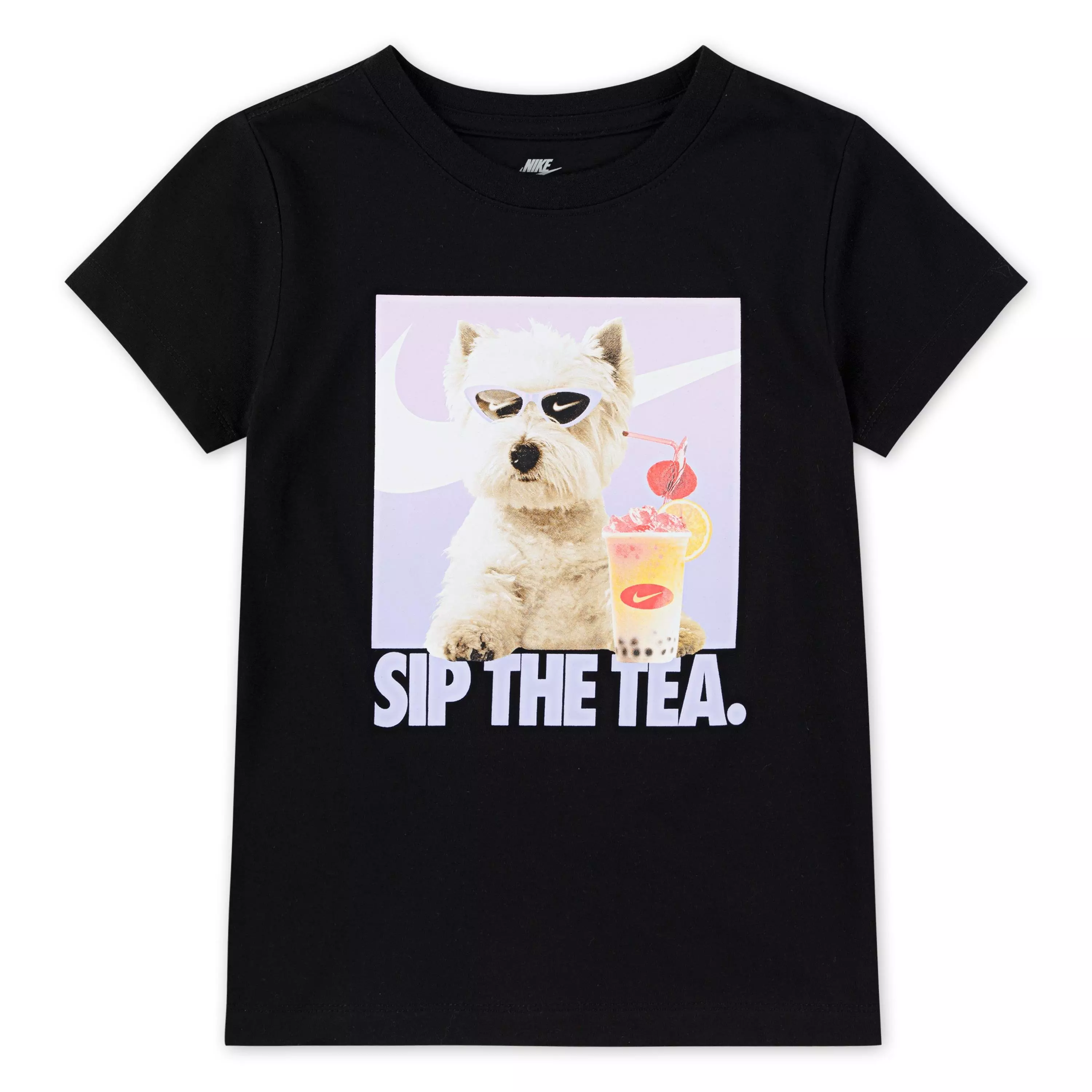 A spin on the classic tee, the Nike Little Girls' Sip Photo Tee - Black brings a fresh take to a wardrobe staple.