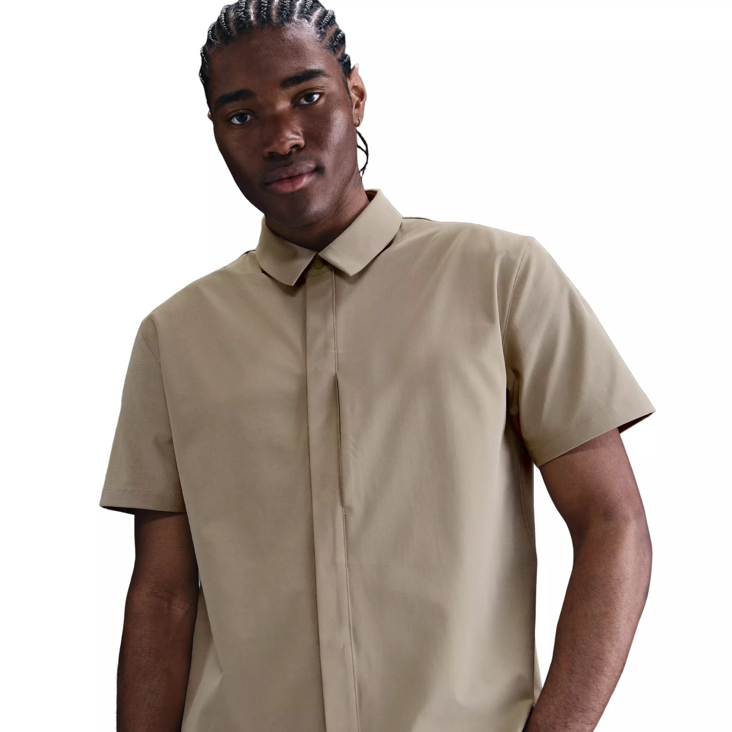 The Nike Men's 24.7 PerfectStretch Dri-FIT Short-Sleeve Snap-Down Top delivers a polished look with all-day comfort. Crafted with four-way stretch Dri-FIT fabric, it moves with you while wicking away sweat to keep you dry during busy days.