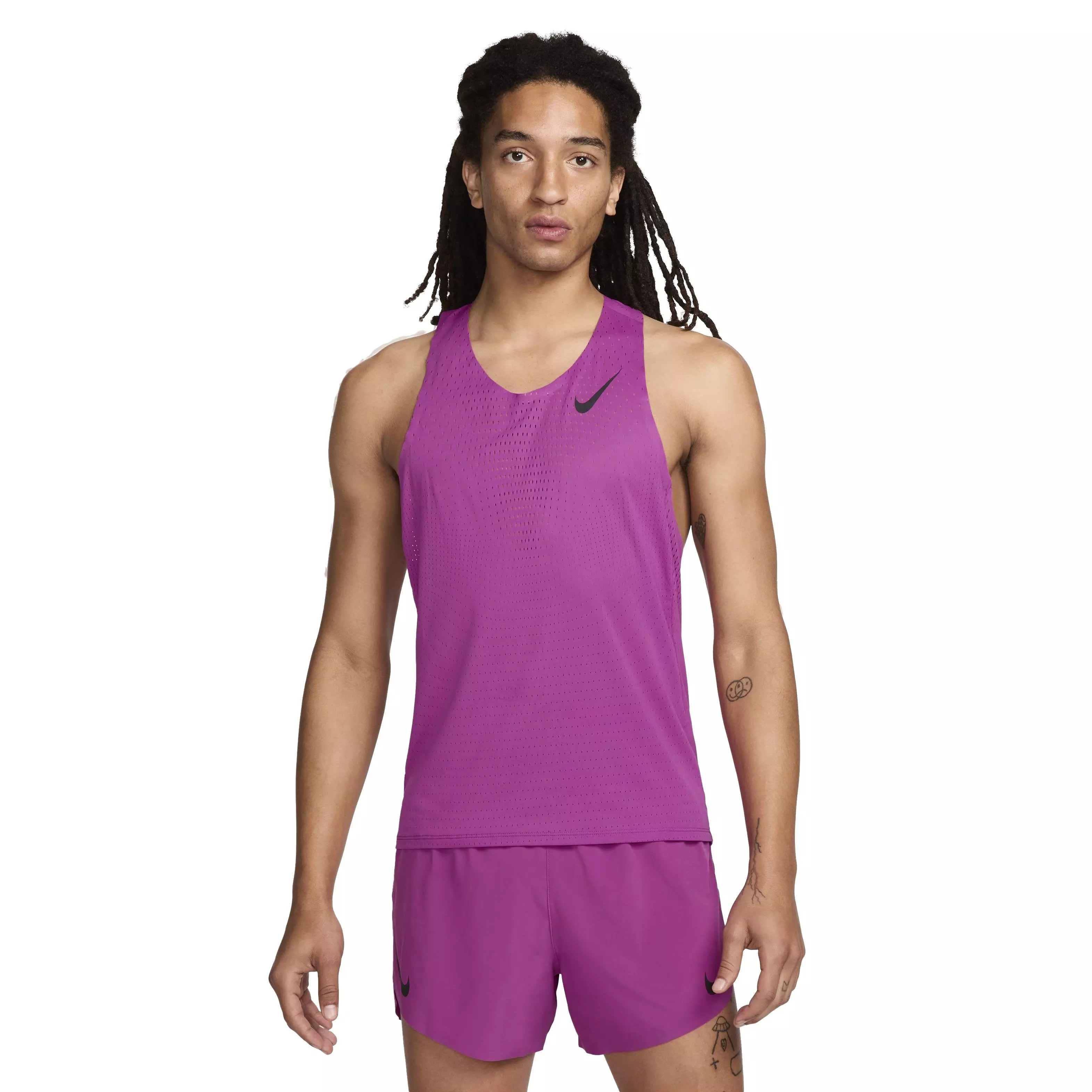 You've pushed through the worst to compete with the best. So let the ultra-breathable feel of our Nike Men's AeroSwift Dri-FIT ADV Running Singlet - Purple take you across the finish. Designed for racing, this lightweight and smooth top uses our most innovative technologies so you can focus on beating your personal bests.Features