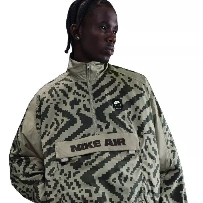 The Nike Men's Air 1/2 Zip Jacket channels a sporty, vintage vibe with a woven shell, water-repellent finish, and an easy, oversized fit. Finished with a vintage feel, it’s made for easy layering over tees and hoodies when clouds roll in.