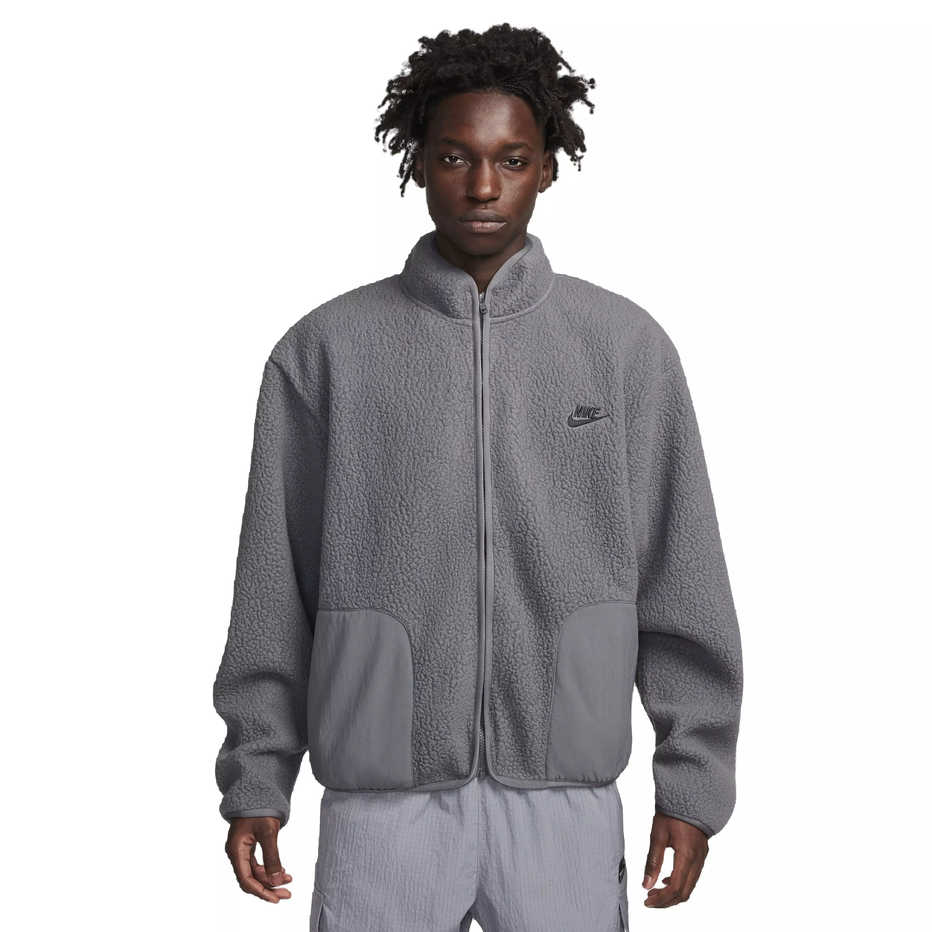 Bring some thick, cozy Nike Men's Club Fleece Sherpa Winterized Jacket into your winter-ready arsenal this season with this Nike Club jacket. Ultra-plush and cut with plenty of space to layer and move, this full-zip jacket features woven pocket overlays to help keep water off your valuables. The embroidered Nike Futura logo at the left chest gives it that signature Nike Club finish.Features