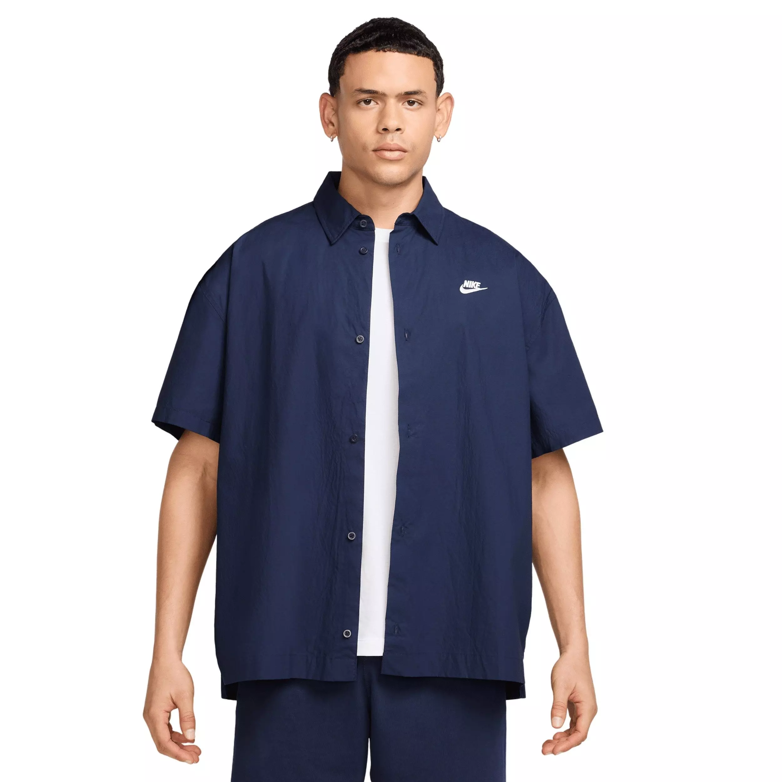 The Nike Men's Club Short-Sleeve Button-Down Shirt -Blue delivers crisp, clean Club style with a relaxed feel. Designed with a spacious, oversized fit, it drapes comfortably and moves with you thanks to fabric that has just the right amount of give.
