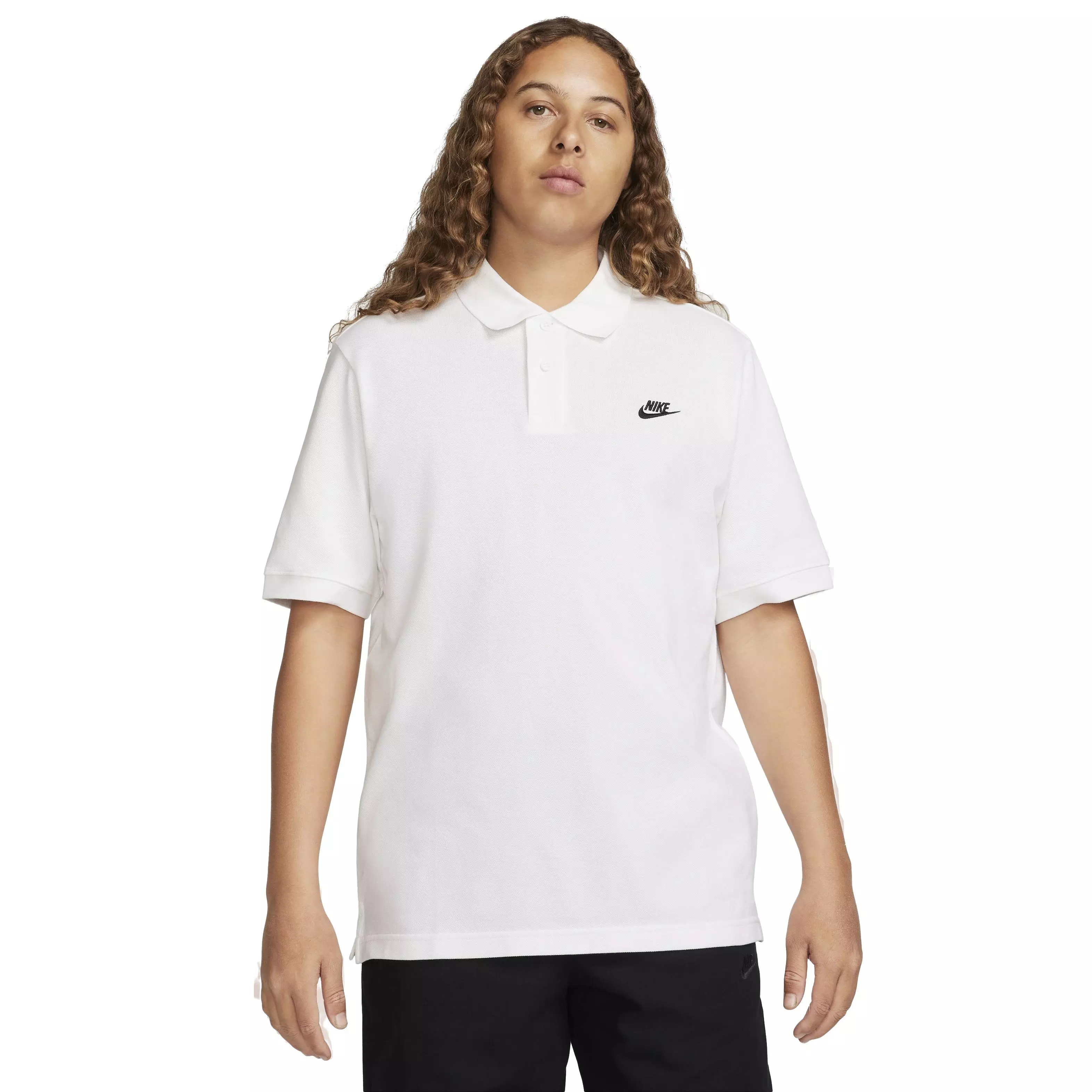 The Nike Men's Club Short-Sleeve Polo features durable, breathable pique cotton with subtle texture. It offers a relaxed chest and body fit that suits athletic layering. The classic design moves easily with your swing and holds shape across every activity.