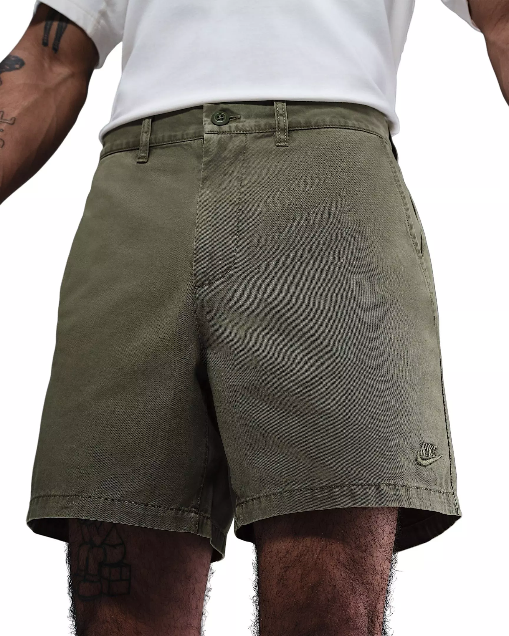 - Logo: Embroidered Nike Futura logo on the Men’s Club Washed Chino Shorts adds subtle brand detail.