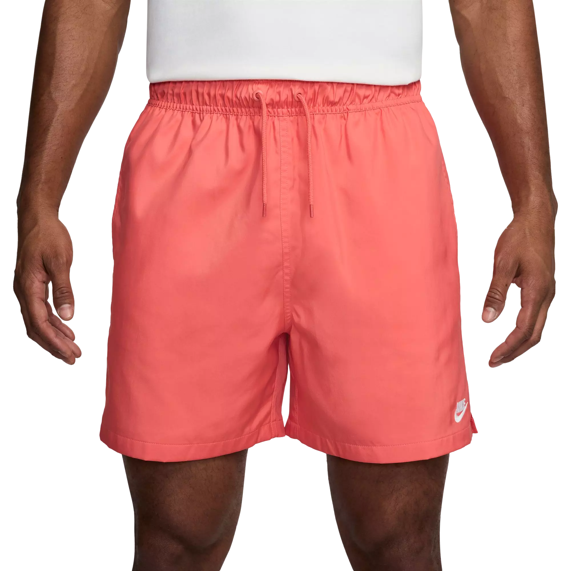 Slide into warm-weather ease with the Nike Men's Club Woven Flow Shorts-Coral. Designed to hit above the knee, they deliver a relaxed feel through the seat and thighs, while the breathable mesh lining helps keep you cool and comfortable from commute to weekend.
