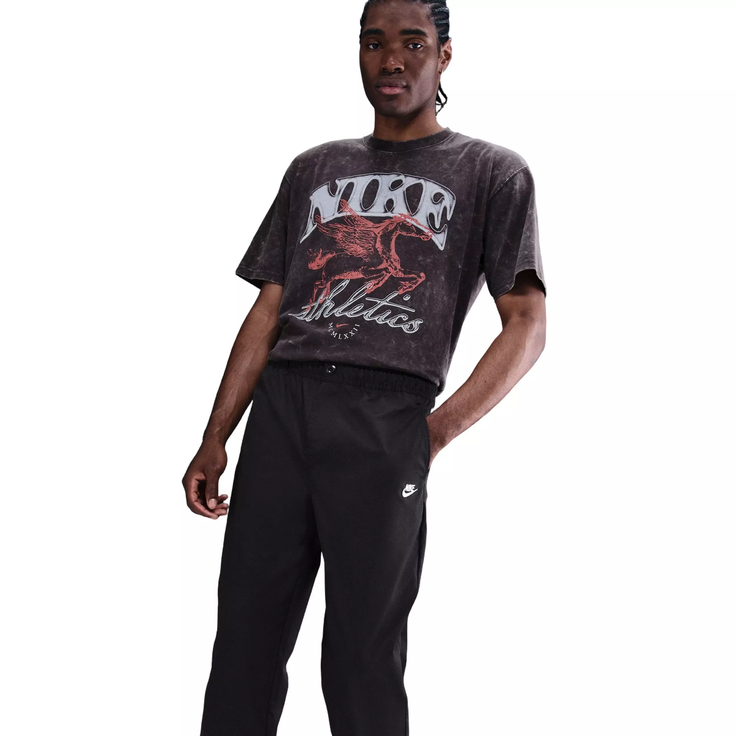 Made for everyday wear, these twill Nike Men's Club Woven Tapered Pants are relaxed through the seat and thighs with a taper through the lower leg for a clean look you can dress up or down. An elastic waistband and button closure deliver a comfortable fit at your waist.Features