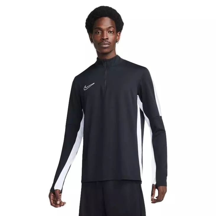 Step onto the field with the smooth and stretchy coverage of our Nike Men's Dri-FIT Aacademy Drill Soccer Top - Black. It's your go-to for training and beyond, with breathable panels to help you stay cool when your drills heat up. Discrete thumbholes let you extend coverage while keeping the sleeves in place and your hands warm—so you can pass, dribble and shoot without anything holding you back.Features