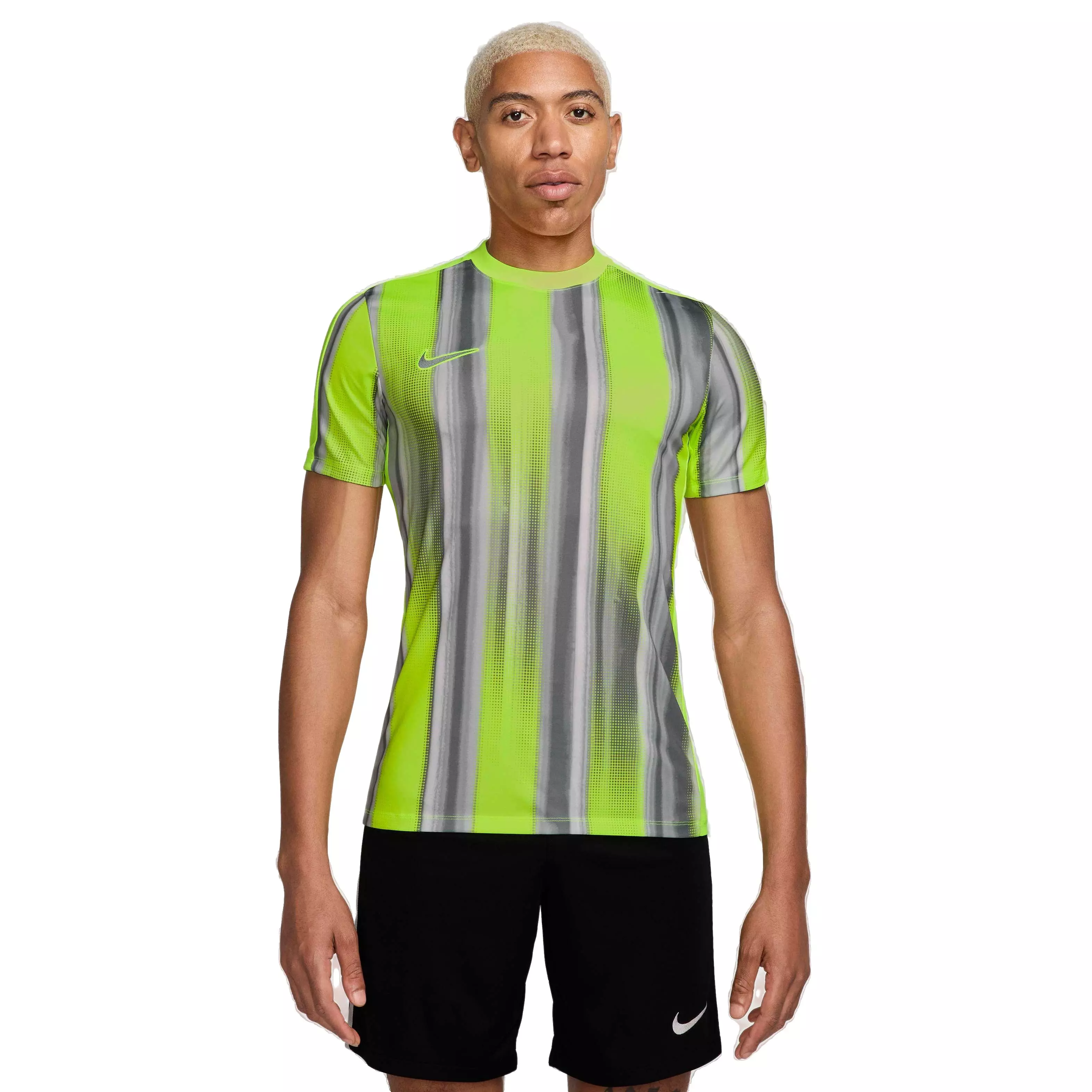 This slim-fit Nike Men's Dri-FIT ACD Short Sleeve Graphic Soccer Top is designed to keep you cool and comfortable on the field. Made with sweat-wicking fabric, it also has mesh panels on the shoulders and upper sleeves to increase the breathability.Features
