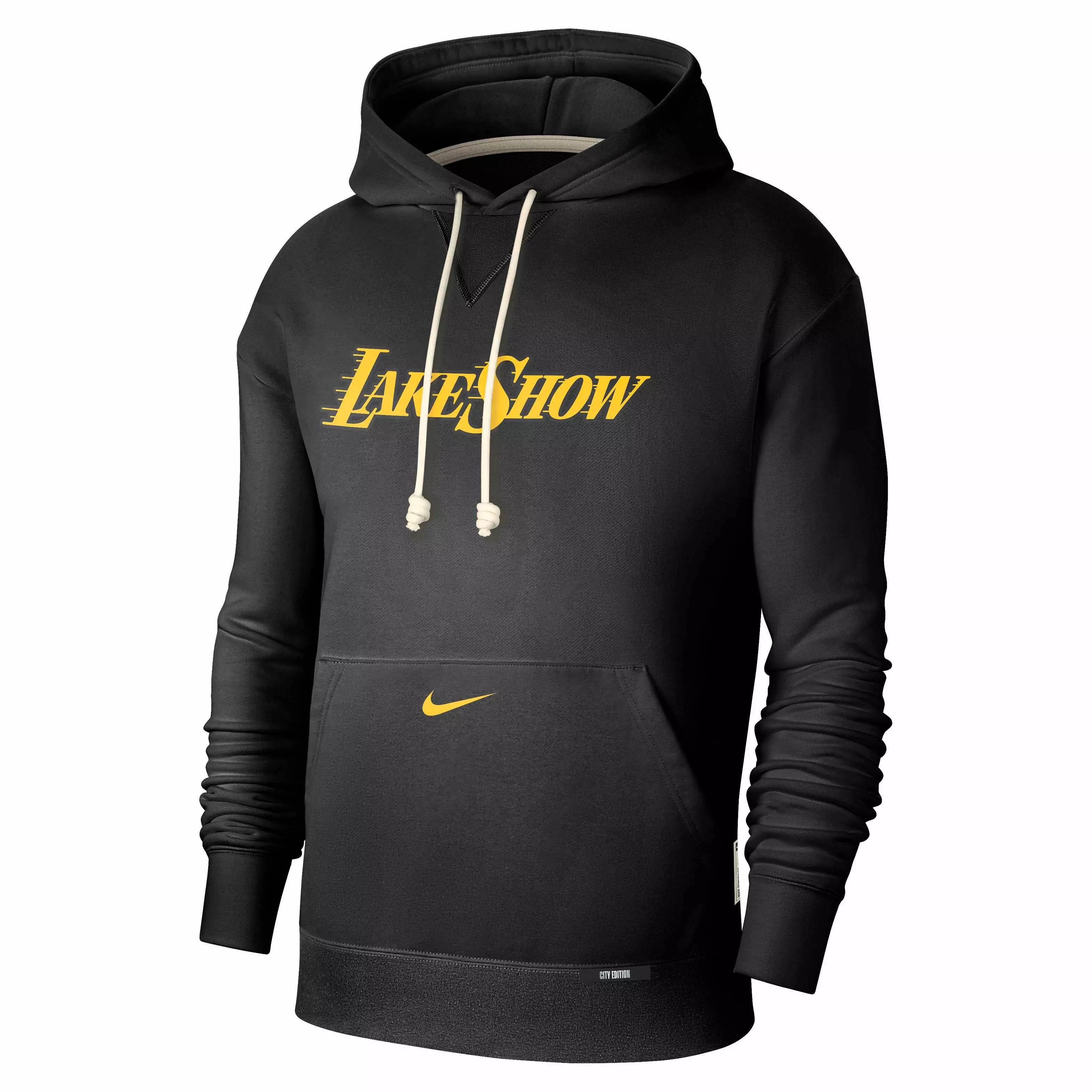 Our Nike Men's Dri-FIT NBA LA Lakers Courtside Standard Issue CE Hoodie celebrates the bond between a team and the town they call home. Inspired by iconic city symbols and past Lakers uniforms, it highlights the unique cultures, communities and history that set LA apart. That local pride combines with a modern performance feel any fan can appreciate.Features