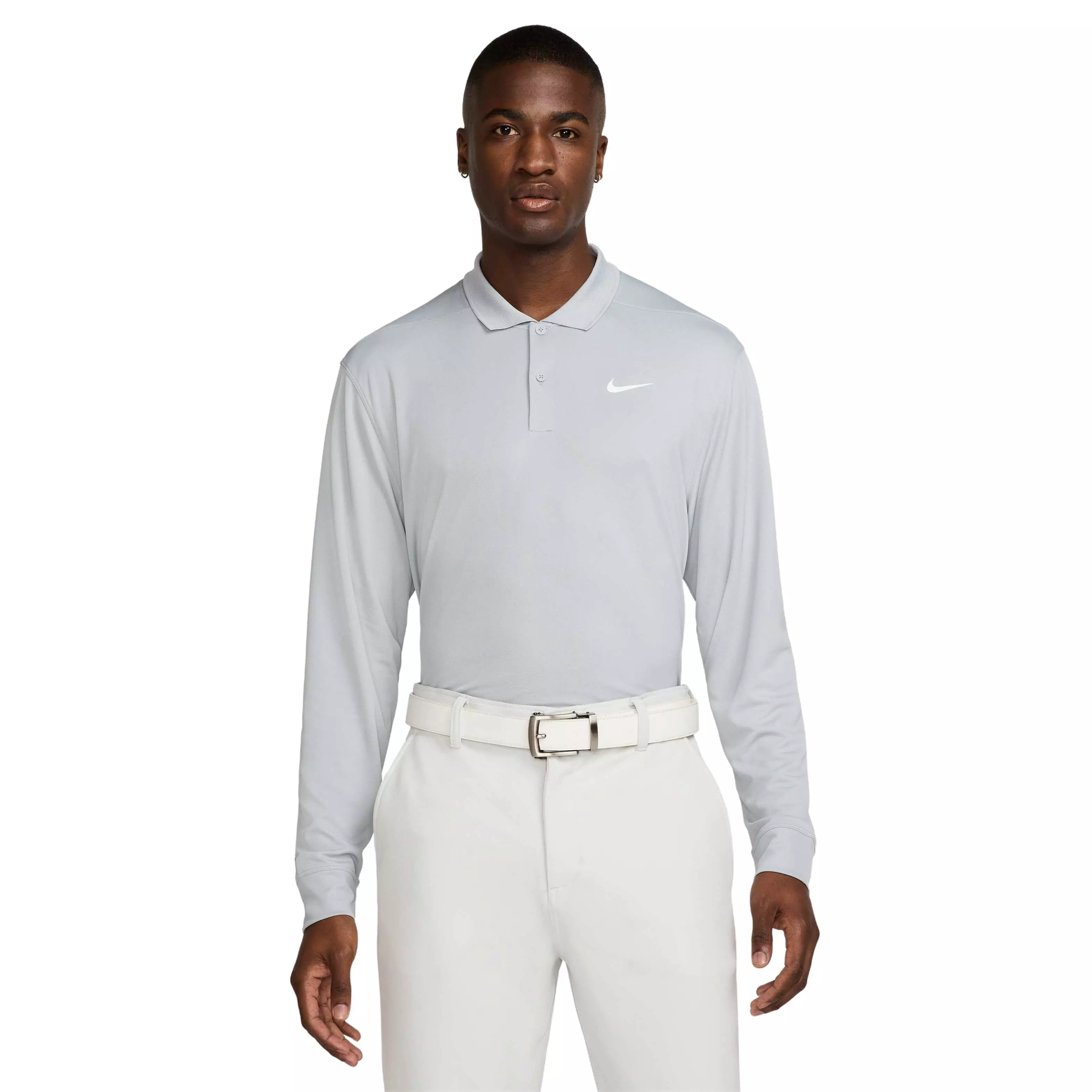 Stay focused from first tee to final putt in the Nike Men's Dri-FIT Victory Solid Long-Sleeve Golf Polo, designed to wick sweat and provide breathable comfort during cooler rounds. The smooth knit feels light against the skin, while long sleeves add just-right coverage for early starts or breezy fairways.