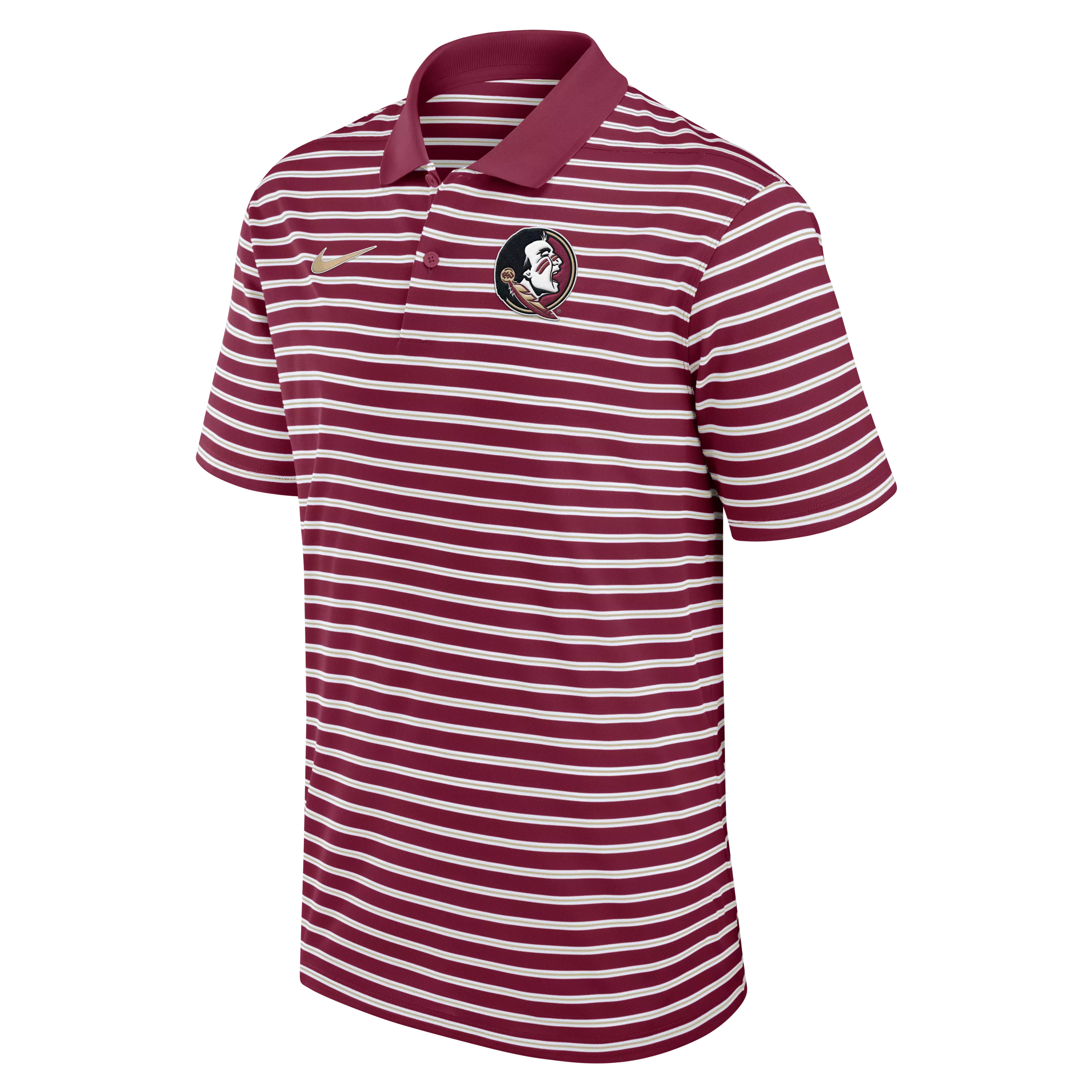 Wear the Nike Men's Florida State Seminoles Striped Polo-Red with pride. Its lightweight, breathable fabric features Dri-FIT® technology to help you stay cool and dry throughout the day.