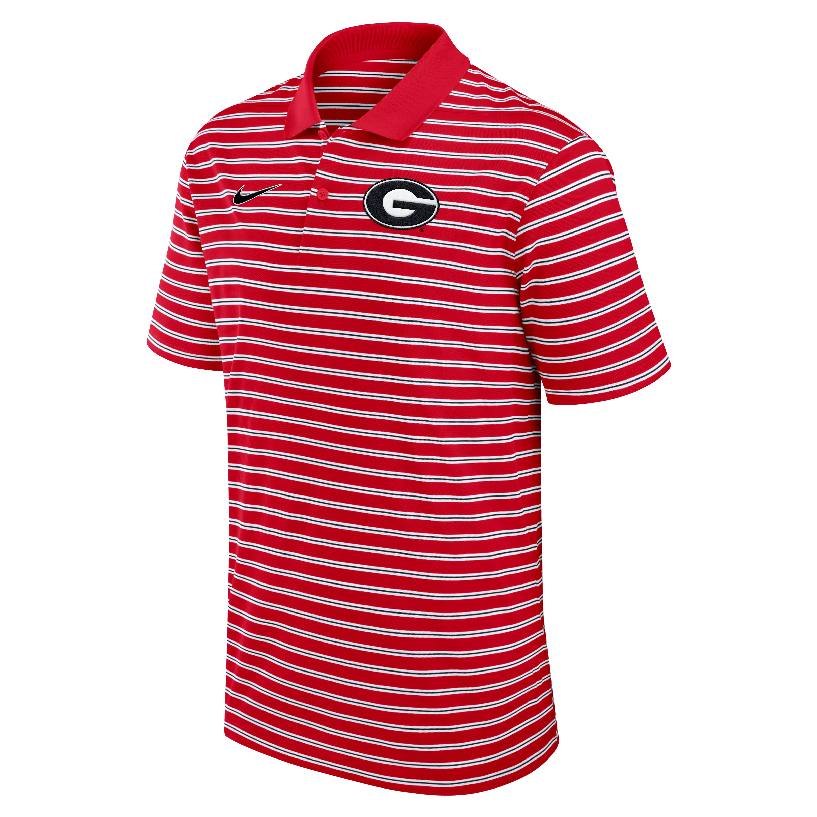 Experience the winning tradition with the Nike Men's Georgia Bulldogs Striped Polo-Red. Lightweight, breathable fabric with Dri-FIT® technology keeps you cool and dry through every play. The classic two-button placket and embroidered team logo at the left chest deliver timeless style and team spirit.
