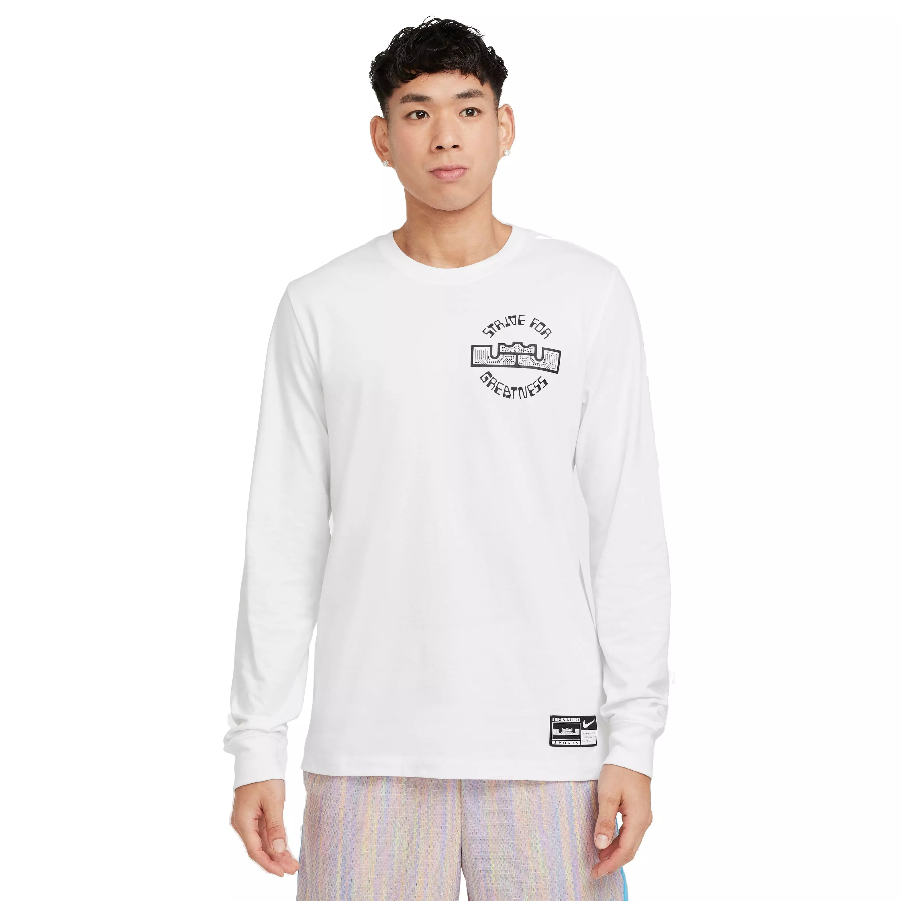 This Nike Men's LeBron Max90 Long Sleeve Basketball T-Shirt is made for action on and off the court. Soft midweight cotton with a roomy fit offers a structured feel.Features