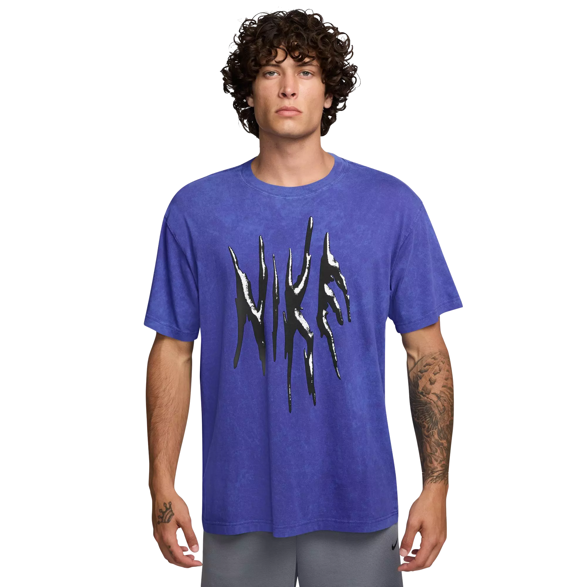 Experience timeless style with this soft, midweight cotton Nike Men's Max90 Basketball Tee-Blue. A subtle vintage wash adds worn-in appeal, and the Max90 cut delivers a roomy silhouette that enhances mobility without compromising comfort.Breathable cotton ensures lasting softness during daily wear. Durable stitching reinforces each seam, giving this tee a classic basketball-inspired edge that endures. Its relaxed profile supports versatile styling.