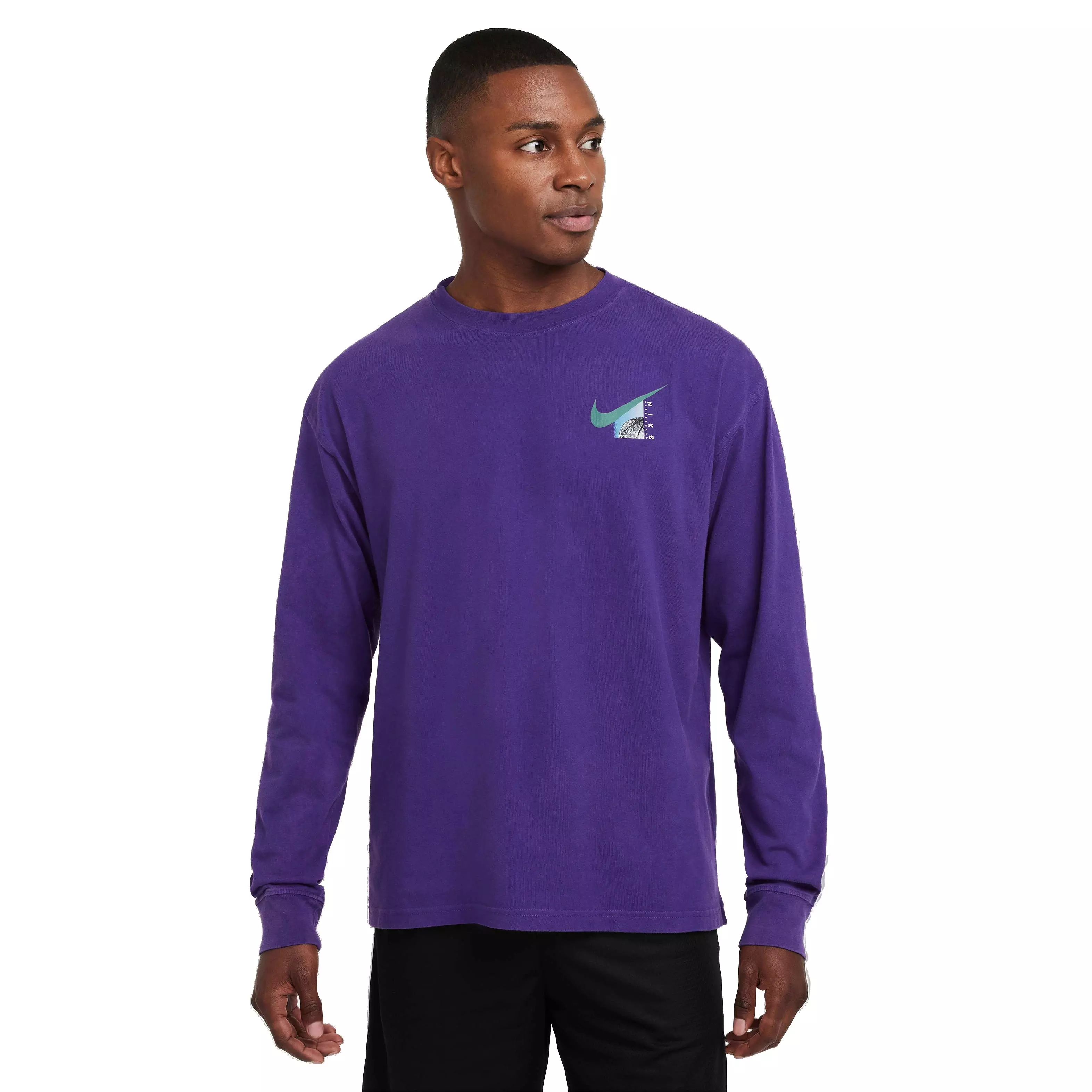 The Nike Men's Max90 Long Sleeve Basketball T-Shirt delivers a touch of vintage hoops style with a loose fit and soft midweight cotton for a structured, easy-wearing feel.