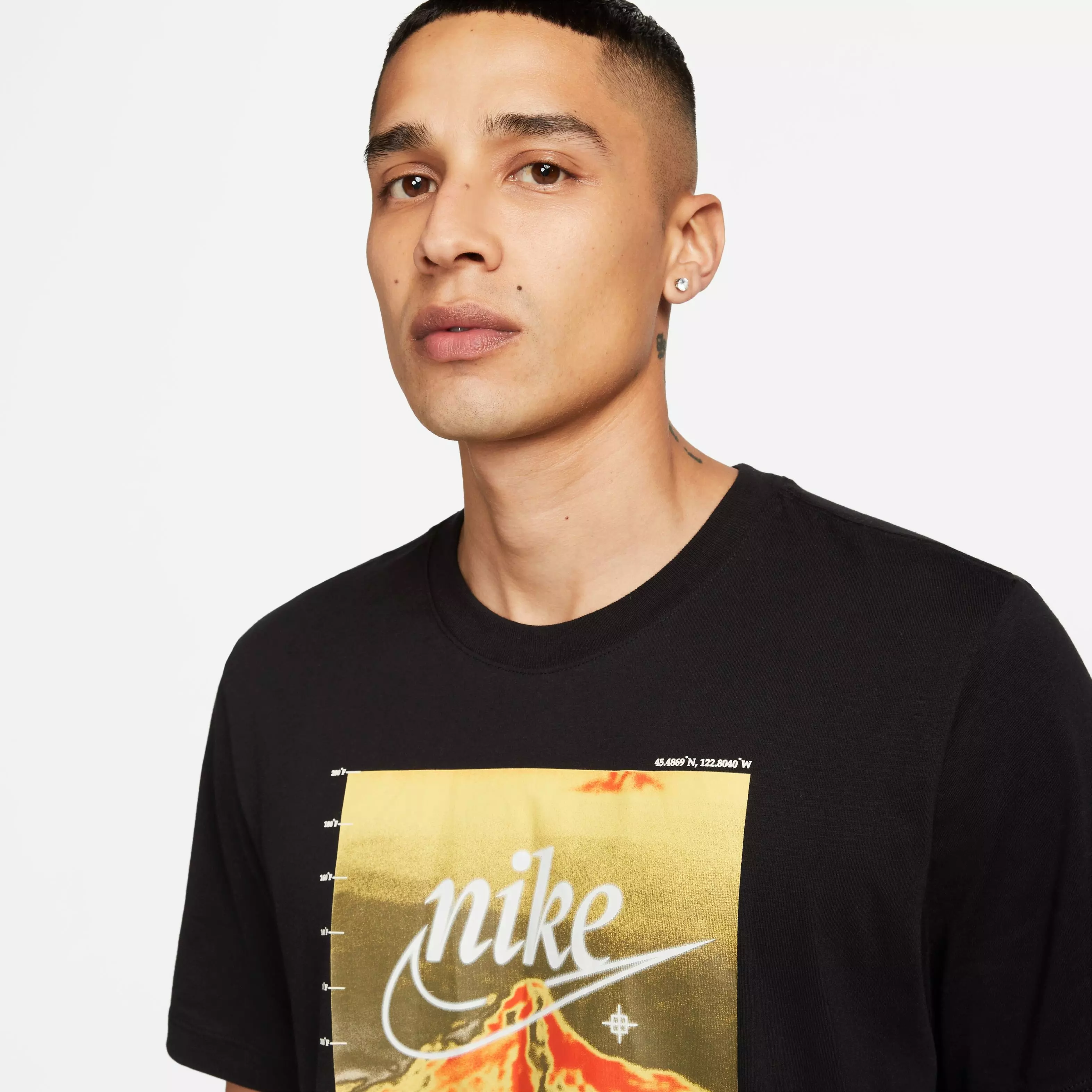 This Nike Men's Mountain Photo Tee - Black is made with our everyday cotton fabric and a classic fit for a familiar feel right out of The bag.The Nike Air skyline graphic adds a signature Swoosh finish.