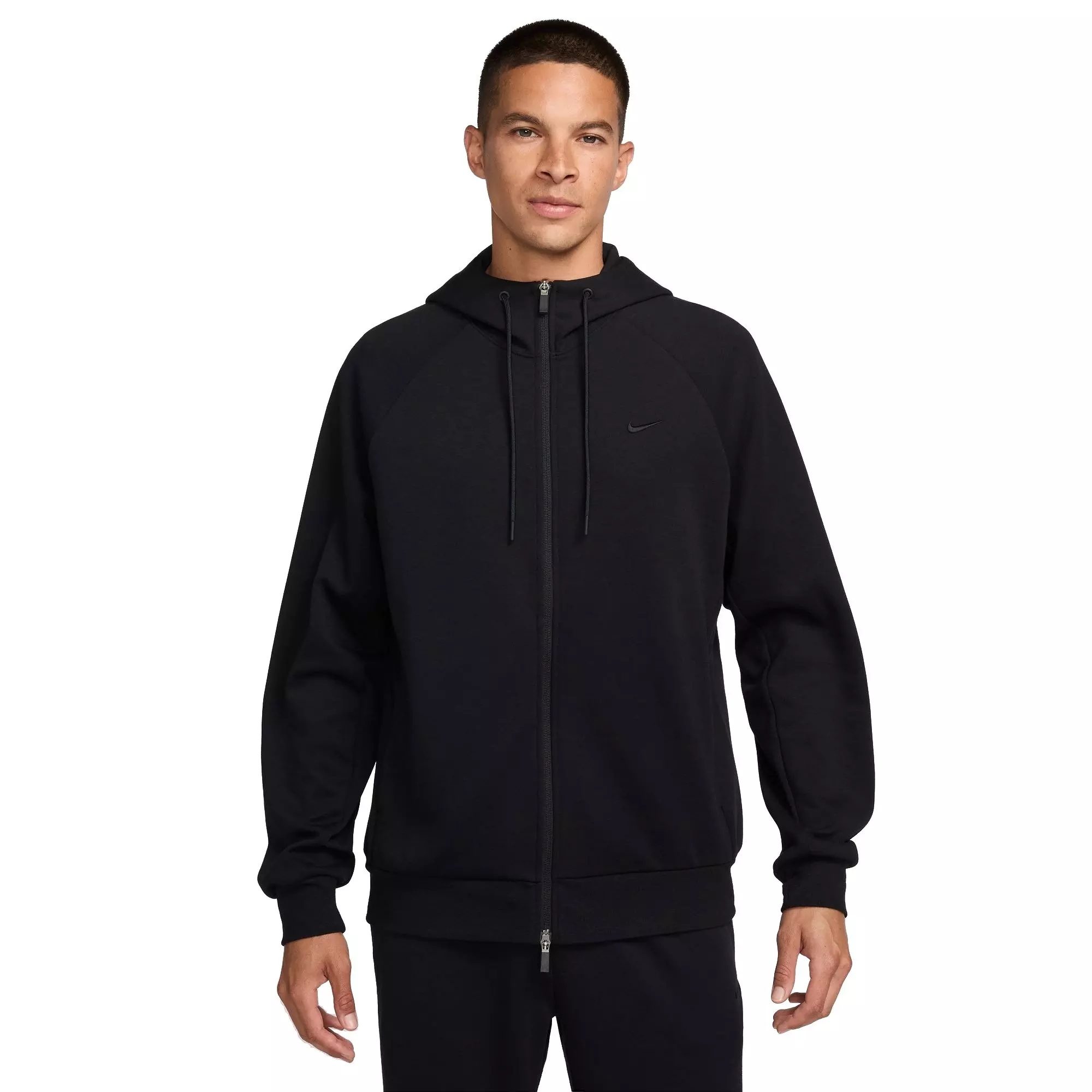 The Nike Men's Primary Dri-FIT UV Full-Zip Versatile Jacket combines soft, sweat-wicking premium knit with built-in eyelets to enhance airflow across high-heat areas. The full-zip silhouette supports effortless layering and rapid adjustments on the move.