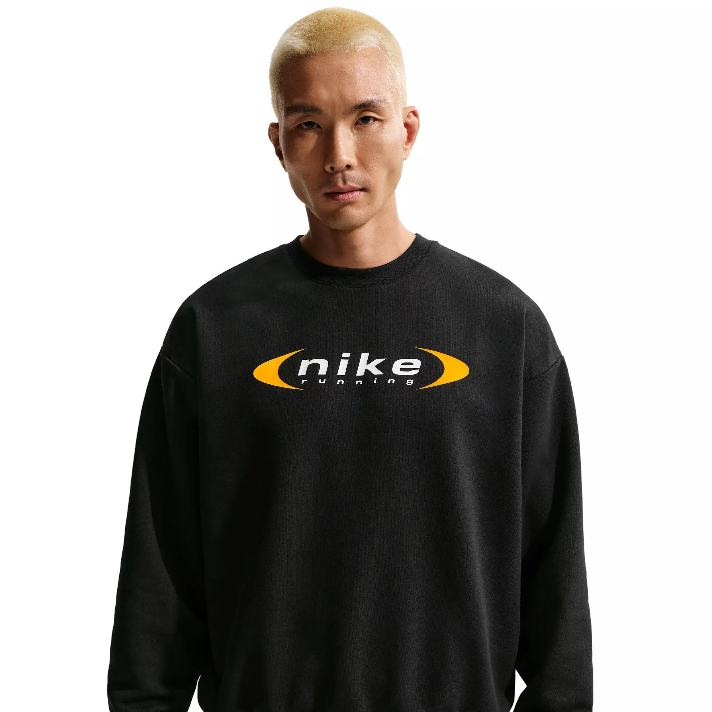 This midweight, French terry black Nike Men's Retro Dri-FIT Crew-Neck Running Sweatshirt is a performance-ready classic. Its has sweat-wicking tech and a roomy fit to help keep you comfortable.