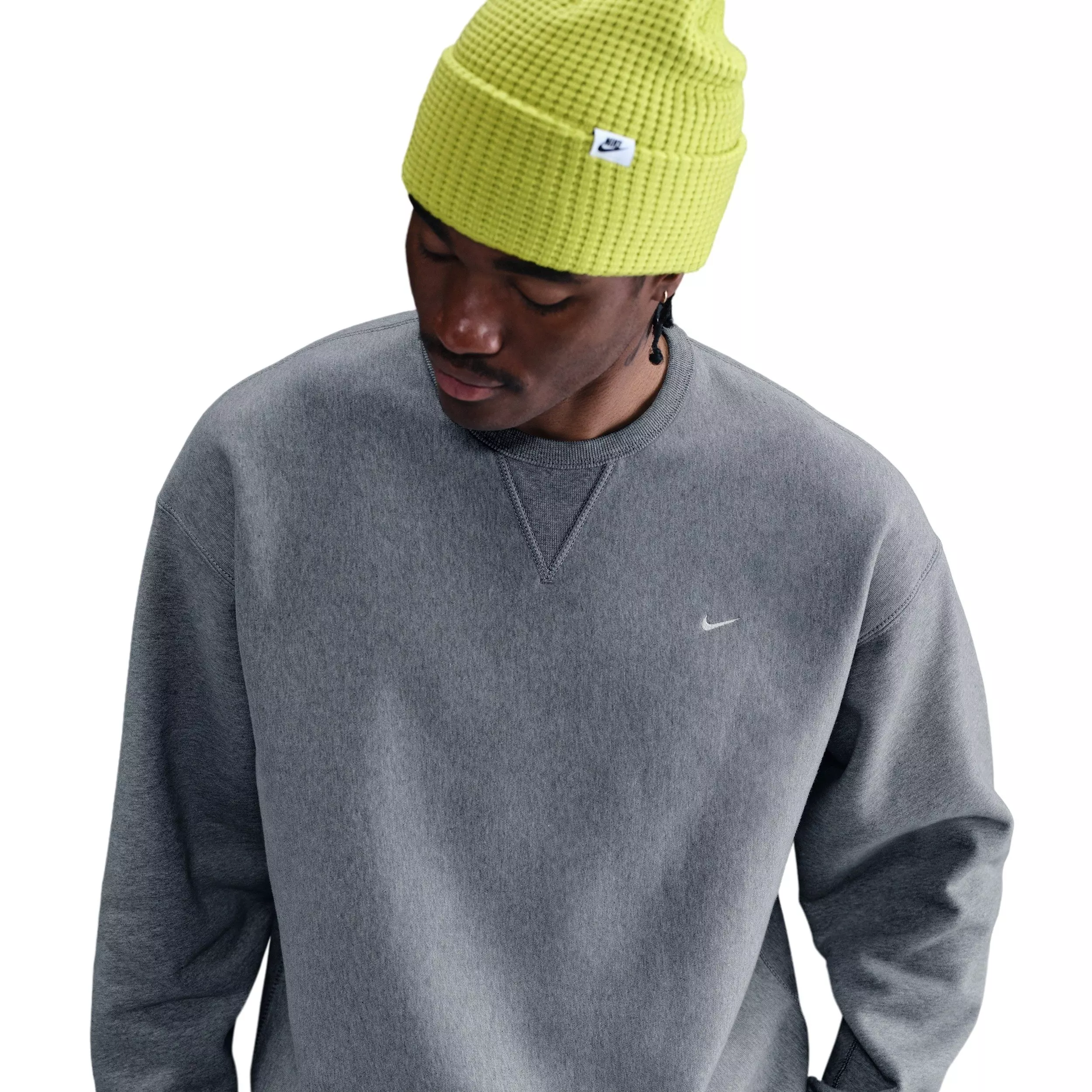 Warm and structured, this Nike Men's Solo Swoosh BB Fleece Crew is crafted with heavyweight brushed fleece that feels plush on the inside and smooth on the outside, bringing a touch of luxury to your casual, cool-weather layers. The loose fit feels roomy through the body.Features