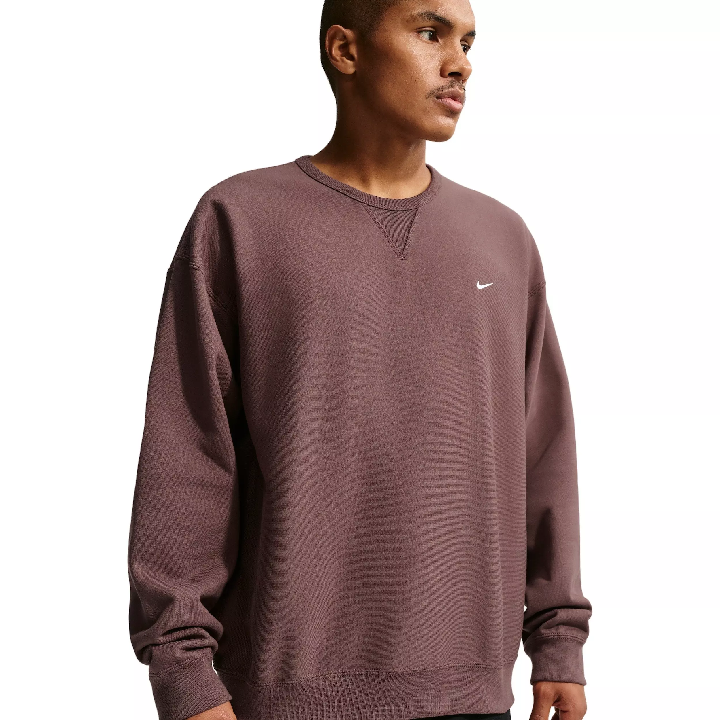 Warm and structured, this Nike Men's Solo Swoosh BB Fleece Crew is crafted with heavyweight brushed fleece that feels plush on the inside and smooth on the outside, bringing a touch of luxury to your casual, cool-weather layers. The loose fit feels roomy through the body.Features